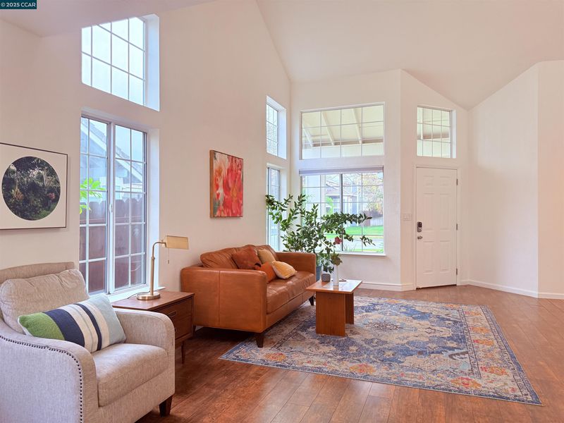 Fall in love with this charming, beautifully maintained two-story home filled with natural light and warm, inviting spaces. Soaring vaulted ceilings welcome you into the bright formal living and dining rooms, where large windows create an open, airy feel. The updated kitchen features white cabinetry, stainless steel appliances, and plenty of workspace, opening comfortably to the cozy family room complete with a fireplace and classic wet bar—perfect for relaxing evenings or gatherings. A full bedroom and bathroom downstairs offer convenience for guests or multigenerational living. Upstairs, you’ll find generously sized bedrooms and a peaceful primary suite. The backyard provides a sweet sitting area ideal for morning coffee or quiet sunset moments. Solar panels add modern efficiency, and the home sits on a quiet street just a short stroll from Pittsburg’s charming Old Town and marina. A warm, welcoming home—ready for its next chapter.