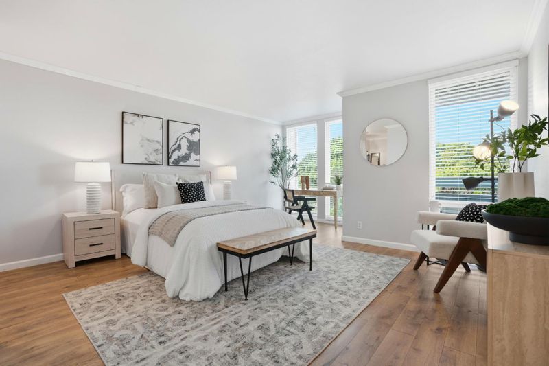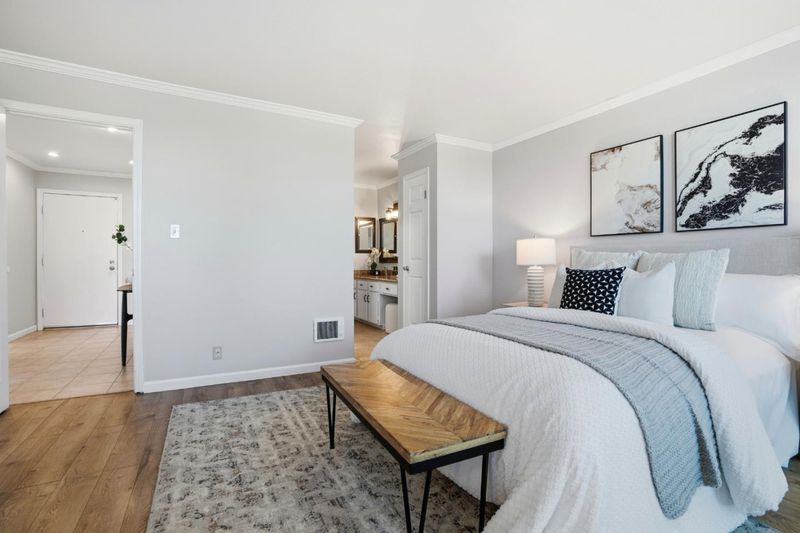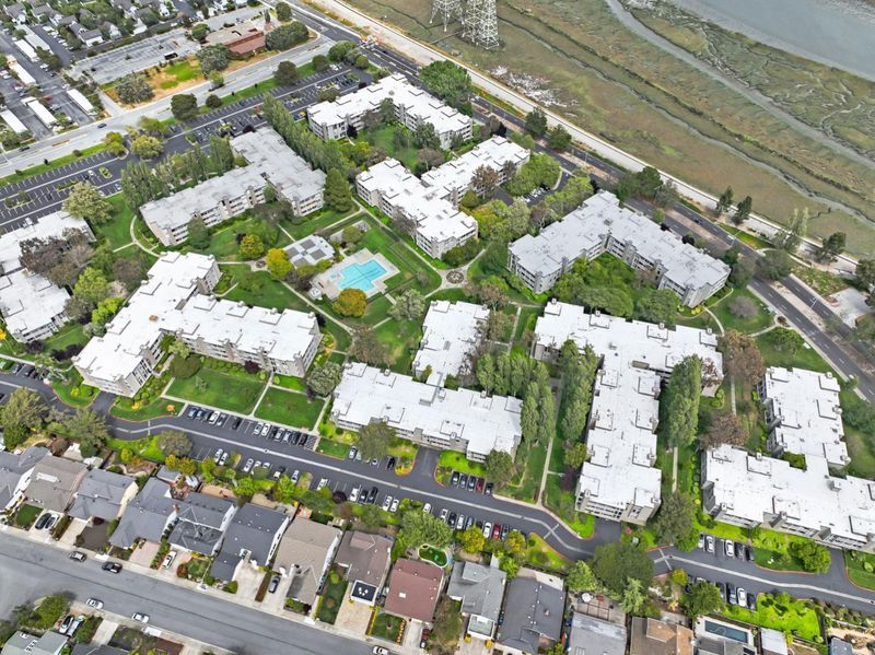 This spacious top-floor corner residence offers 2 bedrooms, 2 baths, soaring ceilings, wood floors, and an open layout that extends to a long balcony with unobstructed views of Foster City and the Bay. Tucked away from the road, it feels private and quiet, creating an ideal retreat. The upgraded kitchen, in-unit laundry, and primary suite with a walk-in closet add everyday convenience, while the corner positioning brings natural light into every room through generous windows. The result is a bright, spacious, and inviting home with a calm, airy feel throughout. The community delivers an impressive array of amenities alongside the Bay Backwater Trail, including a heated pool and spa, BBQ and picnic and event areas, tennis and bocce ball courts, basketball court, kids play area, par course, secure vehicle parking, RV parking, a car wash station, and beautifully maintained landscaping. Additional private storage room is located on the same floor as the unit, and gated parking provides two designated spaces (34/35). Residents enjoy peaceful walking paths, lush greenery, and a strong sense of privacy, all while being minutes from top schools, parks, recreation trails, local shopping, and easy commute. This home blends comfort, convenience, and a truly enviable Foster City location.