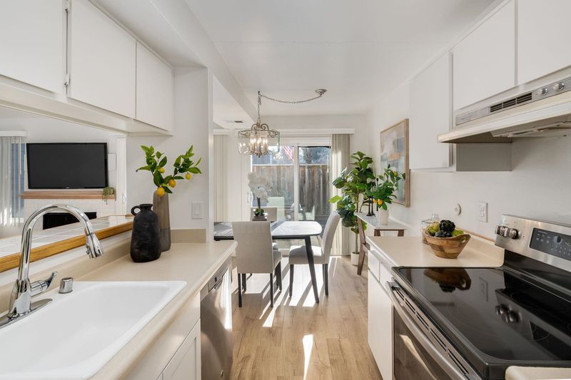 Welcome to 218 Ashley Circle, a beautifully updated corner-unit townhome located in the Walnut Forest community of Danville. This home offers light-filled interiors, a flexible floor plan, private outdoor living, and access to well-maintained community amenities. The main level features wide-plank flooring, fresh neutral finishes, and an inviting living room centered around a cozy fireplace. Large sliding glass doors open to a private, fenced patio—ideal for indoor/outdoor living and everyday enjoyment. Natural light fills the space throughout the day. The kitchen is bright and functional with crisp white cabinetry, stainless steel appliances, ample counter space, and a breakfast bar that opens to the dining and living areas. The adjacent dining area, accented by a modern chandelier, also enjoys direct patio access. Upstairs, the spacious primary suite offers room for a sitting area or home office, generous closet space, and abundant natural light. The remodeled en-suite bath features a contemporary walk-in shower with clean tile finishes and modern fixtures. Additional bedrooms are well-sized and versatile, and secondary bathrooms have been tastefully updated. Residents enjoy Walnut Forest’s landscaped greenbelts, walking paths, and community pool, along with a peaceful setting