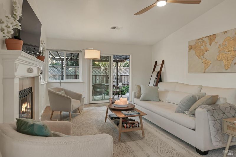 Welcome to Sonesta Villas, a beautifully maintained condo community in the heart of Sonoma. This rare, impeccable end unit is offered FULLY FURNISHED AND TOTALLY TURN KEY with a modern, refined and stylish design. Flooded with natural light being an end unit , this home features vaulted ceilings, skylights, Lovely wood floors, a gas log fireplace , all with an open floor plan with neutral colors. The totally stocked chef's kitchen includes granite countertops, stainless appliances, generous storage, and open to the dining area. The Primary Suite offers open ceilings, deck access, two closets and a remodeled en-suite bath with walk in shower. A second bedroom is close to the upgraded hall bathroom and interior laundry closet with a European washer/dryer unit, completes the layout. Enjoy a quiet, private low maintenance backyard with a freshly refinished deck, and lovely covered Pergola for outdoor dining. Just five blocks to the historic Sonoma Plaza, restaurants, shopping and the lovely bike/walking path through town. Community heated pool and spa complete this Sonoma Escape! Yours to love....