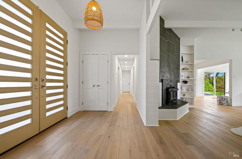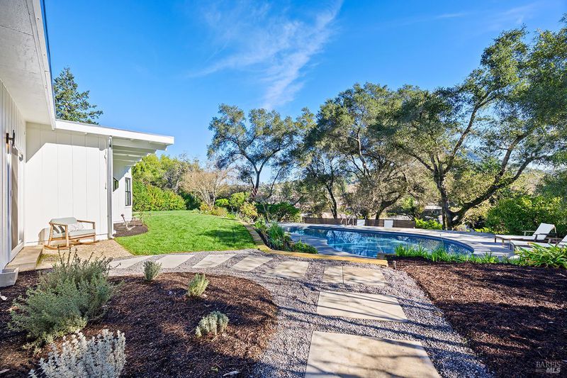 Stunning single-story home on an incredible lot with privacy and views in downtown Healdsburg. Renovated in 2025, this high-end Mid-Century style home has designer touches, boasts 4 generous bedrooms, plenty of space for gathering and entertaining, a fabulous pool and sits on a .45-acre parcel. Tucked back off University, the sun filled flag lot has mature landscaping and views to Fitch Mountain and beyond. Inside you will be delighted by the brand-new kitchen with stainless steel appliances, wine fridge, wide plank French Oak floors, gorgeous Taj Mahal quartzite countertops and an oversized peninsula with bar seating and storage. The kitchen space is expansive with great workspace and includes a breakfast area. Off the kitchen there is an additional space, filled with windows that would make a great light filled reading nook or sunroom and has a sliding door that provides access to the outdoor patio. The great room consists of the living room with a wood burning fireplace connecting with the dining area that offers views to the pool. Enter the primary suite with a sliding door that opens to a patio with views and a luxurious bathroom with soaking tub and walk in shower. In addition, there are 3 spacious bedrooms, one with a built-in desk and another full bath with double sinks and a powder room off the laundry room. The laundry room, with new washer and dryer also has a work sink and additional storage and a walk-in pantry. Step outside into the park like backyard and relax, swim, work on a garden or enjoy your detached flex space that is currently staged as a private gym/studio. This rare parcel is set amongst other estate homes and just a few blocks from downtown Healdsburg. For efficiency it has two heat pumps and owned solar. More room to grow so talk to the city about adding a pool house or ADU. An amazing place to call home!