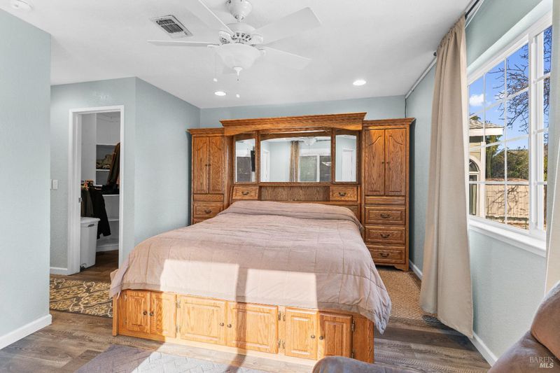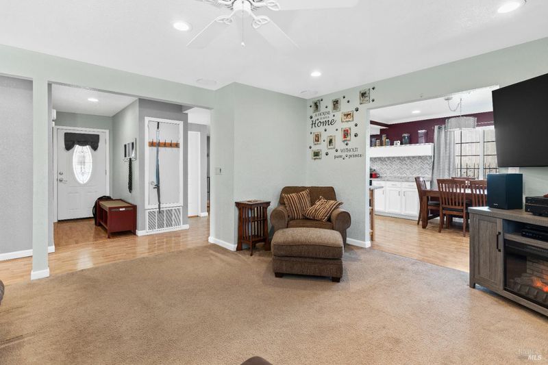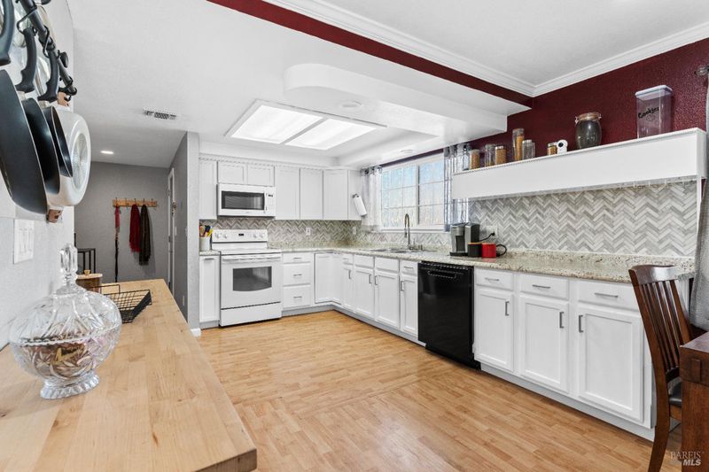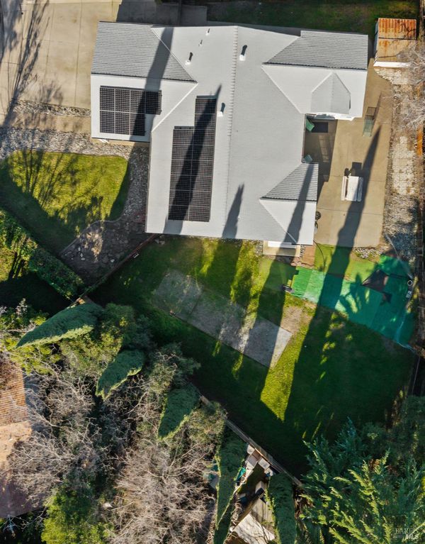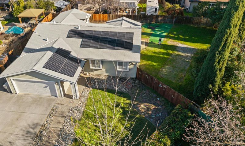 Welcome to this well maintained single-story home located in one of Vacaville's most desirable neighborhoods. Situated on a quiet mid-court, central lot, this property sits on one of the largest parcels in the community approximately 9,000 square feet offering exceptional outdoor space and endless possibilities. The expansive backyard provides rare versatility, ideal for a potential ADU, pool, RV or fifth-wheel parking, or the creation of a custom outdoor retreat. Inside, the home features fully owned solar, free and clear, delivering energy efficiency and long-term savings with no lease or payment obligations. The layout connects the living room, kitchen, and dining areas, creating an inviting space for everyday living and entertaining. The remodeled kitchen boasts ample cabinetry, a custom pantry, and durable vinyl flooring that flows throughout. Adjacent to the dining area is a flexible room, ideal for a home office, den, playroom, or additional living space. Down the hall are three generously sized bedrooms and a guest bathroom. The primary suite serves as a private retreat, complete with its own bathroom, walk in closet and a sliding glass door that opens directly to the backyard, enhancing indoor-outdoor living. Step outside to a spacious backyard that truly sets this home apart open, private, and ready for your vision. Whether you're dreaming of entertaining, relaxing, or expanding, this blank canvas offers endless potential. Additional highlights include newer exterior paint, a newer roof, and a newer water heater, all reflecting pride of ownership. Conveniently located near shopping, schools, downtown Vacaville, and with easy freeway access, this move-in-ready home offers comfort, convenience, and the perfect place to create lasting memories.