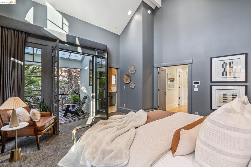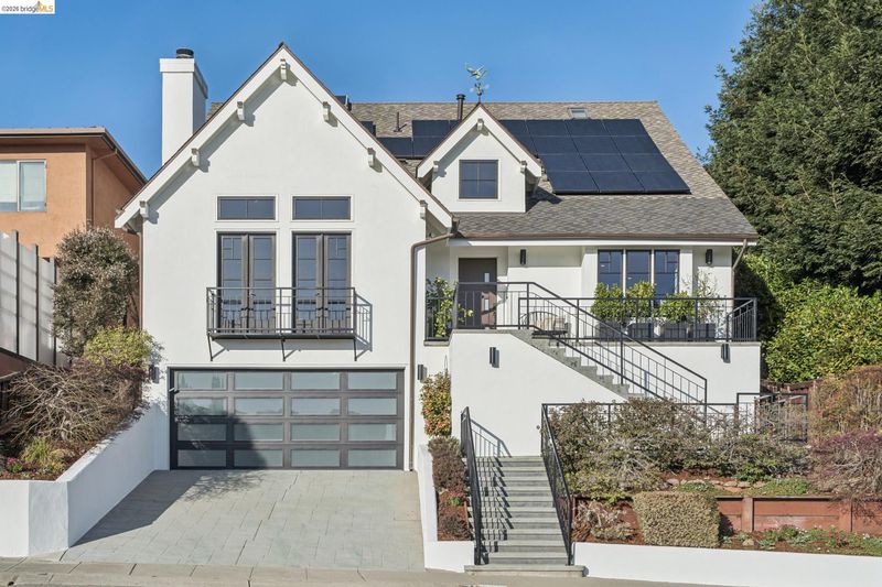 Spectacularly stylish with all the bells and whistles! Luxury is everywhere in this modern architectural masterpiece: dramatic vaulted ceilings, views of the Bay, a primary ensuite on par with a hotel includes a private balcony and spacious walk-in closet, designer lighting, solar panels, custom drapery throughout, and perhaps the most deluxe chef’s kitchen of all! Plus a desirable floorplan offers a bedroom suite on the ground level, 3 more bedrooms and 2 full bathrooms and laundry on the upper level, and a separate home office with exterior entrance on the lower level. The colossal 3-car garage has room for a home gym, extra fridge-freezer space, and loads of storage. A garden oasis right off the kitchen/den twinkles at night with a soothing stone fountain, mature maples and a magnolia, and built-in bench seating. All of this is located just minutes to College Avenue shops and restaurants, excellent schools, and outdoor recreational space!