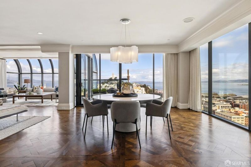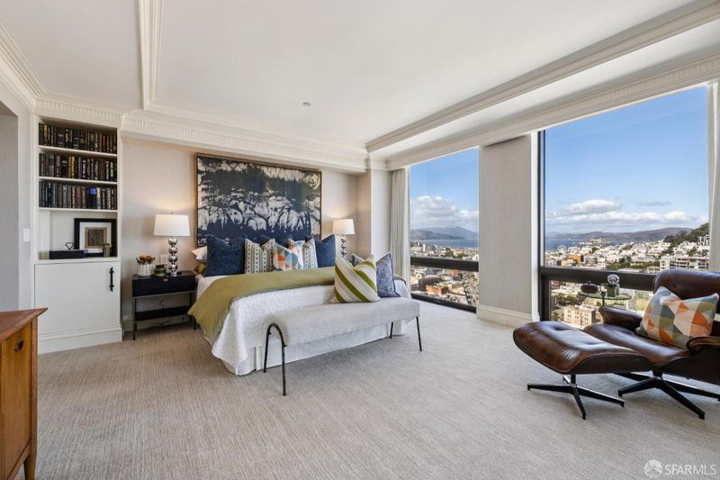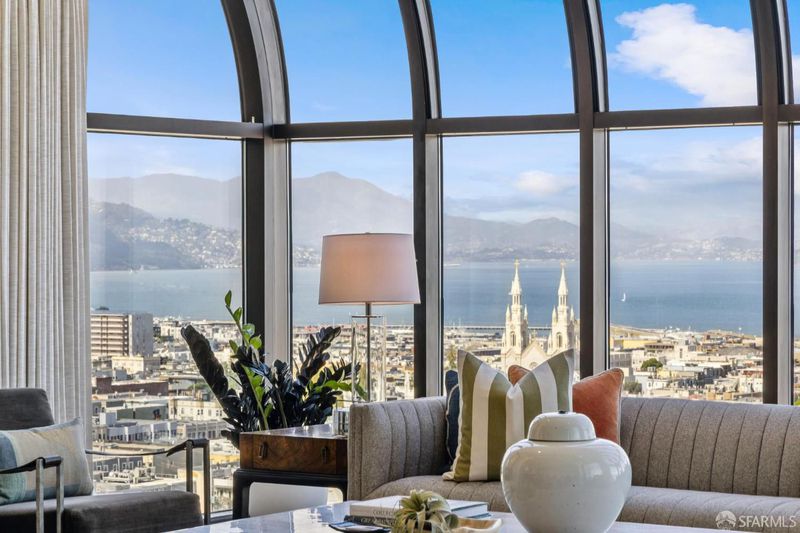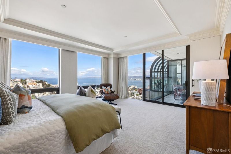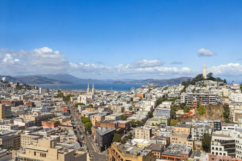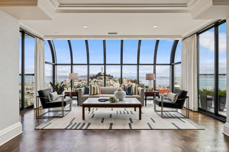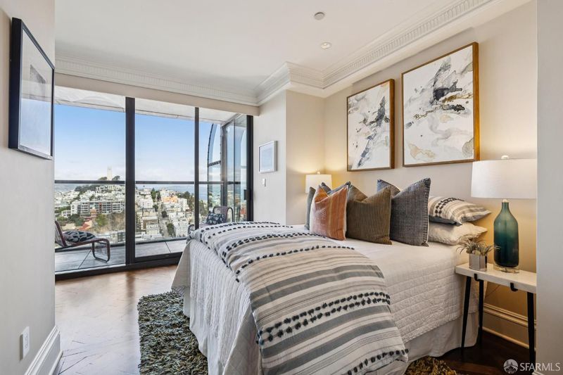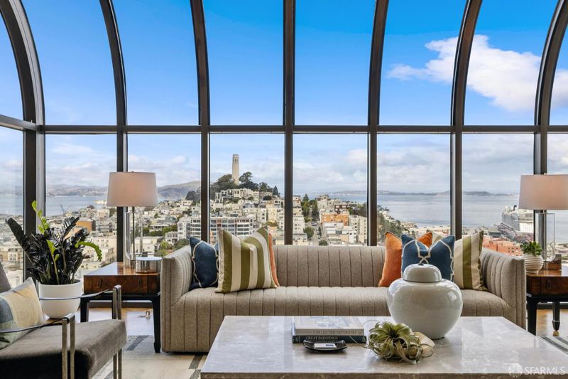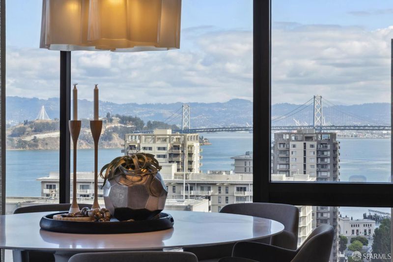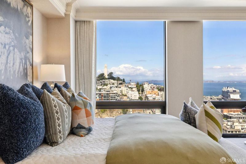 Wrapped in exquisite views from Bay Bridge to Coit Tower to Sausalito, this prime NE corner condo offers a rare combination of world class vistas & luxury lifestyle. Foyer leads to grand entertaining space where every angle offers another iconic SF sight. Handsome mahogany office/media room and chef's kitchen upgrade everyday living. Belgian grass wallpaper, Artemide lighting and elegant materials add designer touches. Primary suite has multiple closets, built-ins, balcony access and his & hers baths w/ steam showers, soaking tub and dressing areas. 2nd bdrm, across from in-unit laundry, also enjoys wall of windows & outdoor access. Located across from vibrant Jackson Square, this boutique 32-unit residence atop a full service highrise offers concierge services, 24hr security, private outdoor pool, sophisticated lobby, AC & high speed elevators. Revitalized Transamerica Pyramid and garden is your closest neighbor, while FiDi, Ferry Building, North Beach and Chinatown are steps away.