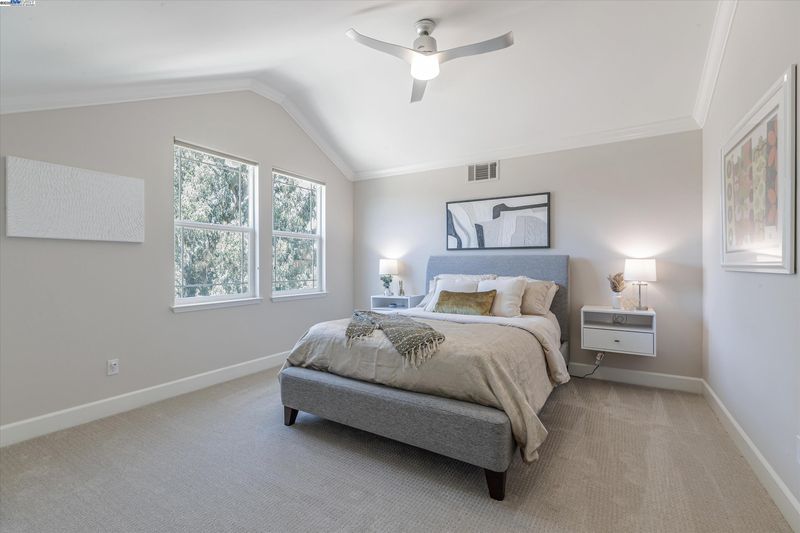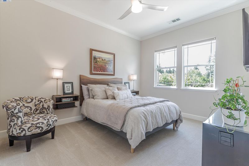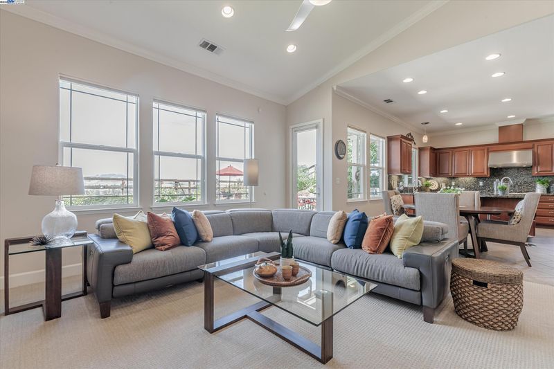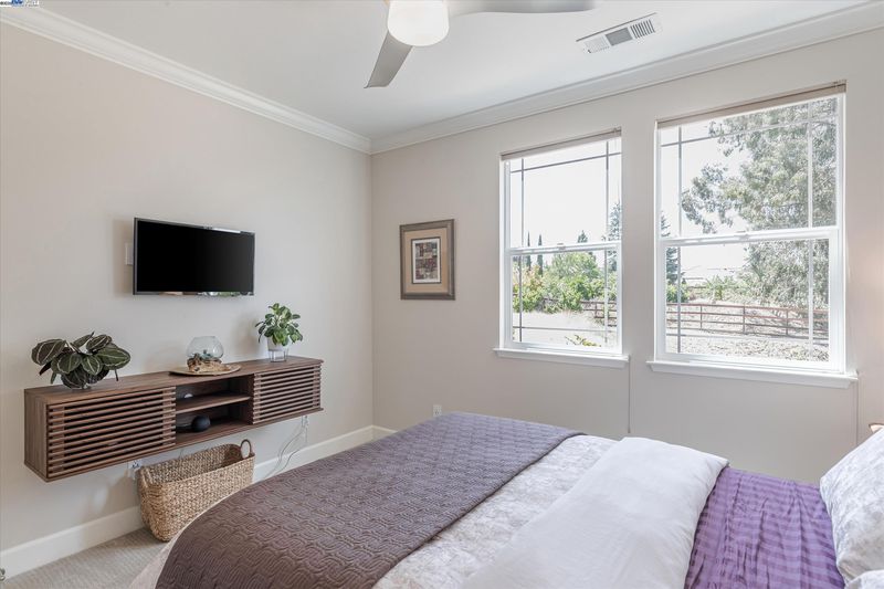 Stunning south facing home on PRIVATE street, NO HOA, no steps to entry. First floor primary bedroom suite. Premium lot with panoramic views of Shadow Cliff Lakes & Mt. Diablo.