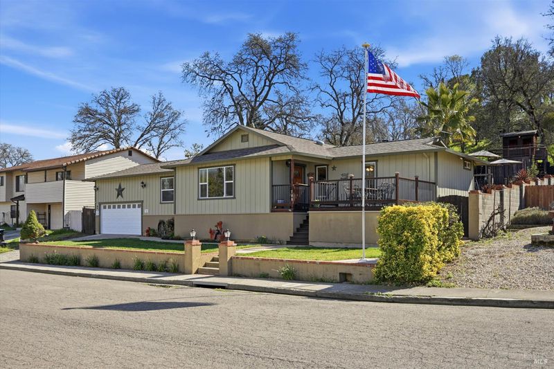 Lovely North Lakeport home with a beautiful backyard! Located in a desirable Lakeport neighborhood, this 3 bedroom, 2 bathroom home is family & entertaining ready. One level home with primary bedroom & upgraded primary bathroom with walk in shower and dual sinks, guest rooms on opposite side of home, nice open kitchen/dining floorplan and separate living area. NEW ROOF and exterior paint in 2022! Outside, the backyard really adds to the living space of home with a fantastic outdoor/entertaining area complete with a private fully fenced yard, hardscaped landscaping, pond/waterfall feature, tiered backyard with large lawn area and playhouse for kids, built in covered hot tub with TV, upper level patio, lower level fully covered patio just perfect for the smoker/BBQ set up. SO many thoughtful and well designed features through out the exterior of this home, from the full french drain system to the stucco built in ice chest with drain on the patio, to the clean concrete pads poured under the home for added storage. Attached 2 car garage (currently used for a workshop/mancave) includes a custom under stairs large dog crate and super easy access attic storage you can walk right into. Built in compressor with lines ran to both ends of home. Home is all electric (plumbed for propane if needed as well!), central HVAC, plus monitor heating & woodstove and is on public water/sewer. Great central Lakeport location right near the local school district and only a minute to Main Street.