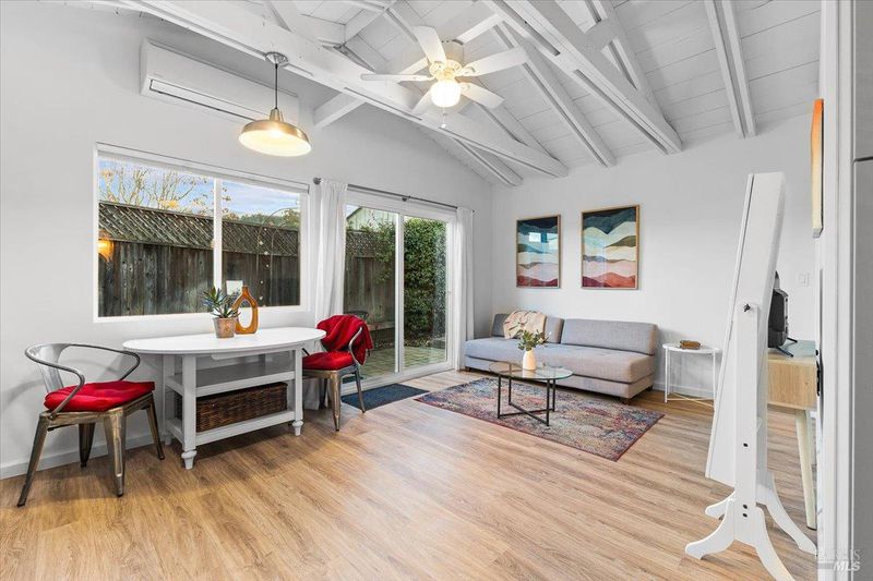 This turn-key wine country compound offers a rare opportunity right in the heart of downtown Geyserville. Pridefully maintained this unique property features two meticulously remodeled homes, making it an ideal personal retreat or a seamless addition to your investment portfolio. The single-level, open-concept main residence consists of two bedrooms and one bathroom. Designed for indoor-outdoor entertaining, large glass sliders open to a deck overlooking the inviting plunge pool, hot tub, and grilling area. This energy efficient smart home is equipped with an owned solar system, battery backup and electric car charger. The neighboring one-bedroom, one-bathroom studio is perfectly appointed with an updated kitchen, modernized bathroom, private in-unit laundry, and its own secluded back patio. Additionally, a finished creative shed sits just across the pool courtyard, offering the perfect flex space for a home office, workout studio, or private wine cellar. Enjoy the vibrant energy of Geyserville with immediate access to beloved local hotspots like Cyrus, Catellis, Diavola, and The Gun Club. With incredibly easy Highway 101 access, you are perfectly positioned to enjoy the very best of wine country living. Life is truly good in Geyserville.