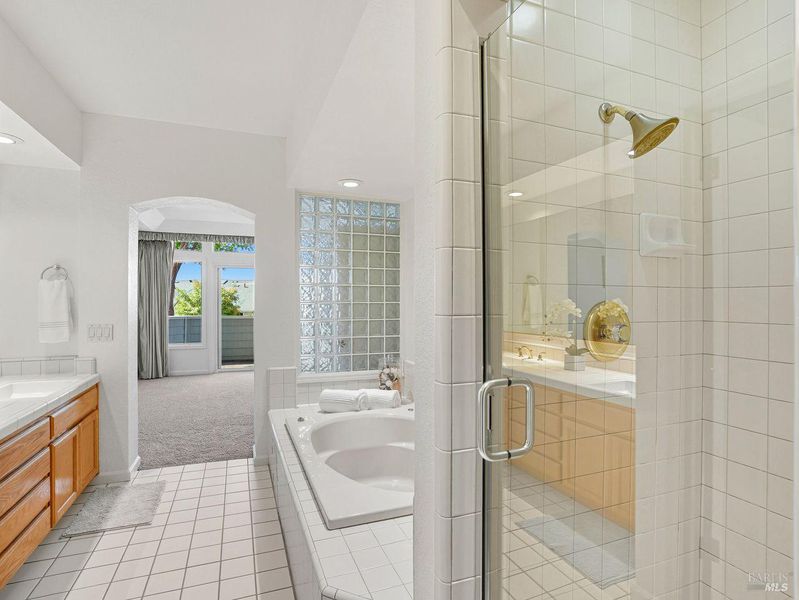 - Double Sinks, Shower Stall(s), Tub, Walk-In Closet