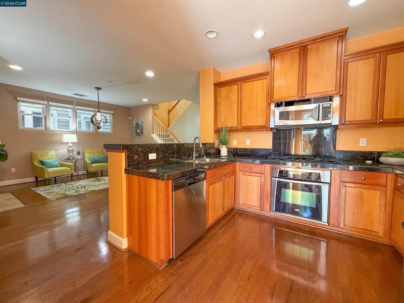 - Dishwasher, Double Oven, Plumbed For Ice Maker, Microwave, Free-Standing Range, Refrigerator, Self Cleaning Oven, Stone Counters, Eat-in Kitchen, Disposal, Ice Maker Hookup, Range/Oven Free Standing, Self-Cleaning Oven, Updated Kitchen