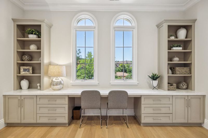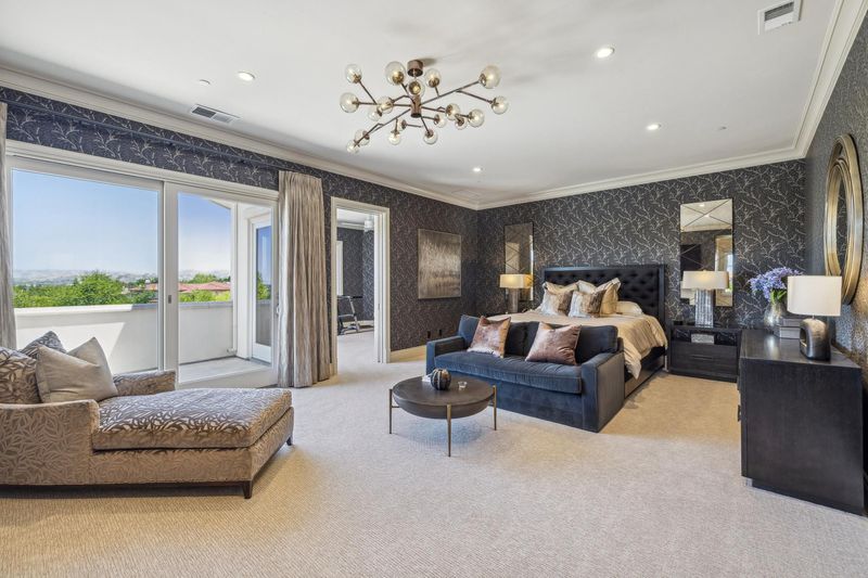 THIS IS IT! Stunning Modern Mediterranean estate with 5 bedrooms, 6.5 baths, and almost 8000 sq. ft. on a private cul-de-sac lot. Dramatic two-story foyer with curved wrought-iron staircase and crystal chandelier. Elegant living and dining rooms with arched windows, gas fireplaces, and silk drapes for formal entertaining. Expansive remodeled modern kitchen with granite counters, walk-in pantry, and breakfast nook. Family room with stone mosaic fireplace and built-ins. Serene primary suite with dual walk-in closets, spa-inspired bath, oversized soaking tub, steam shower, wet bar, skylight, and balcony with valley views. Other rooms include bonus/game room, media room, 2 offices, and separate au pair/guest suite with kitchen. Outdoor oasis with sparkling pool, spa, built-in BBQ, and covered porch. Top of the line designer finishes throughout include hardwood floors, travertine inlays, coffered ceilings, custom crown molding, and a security system. Minutes from shopping, top schools, and major commute routes. Welcome home!