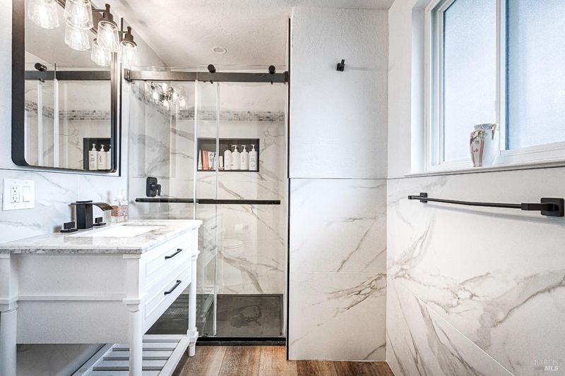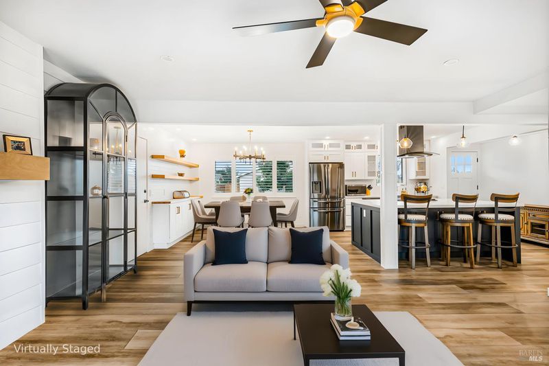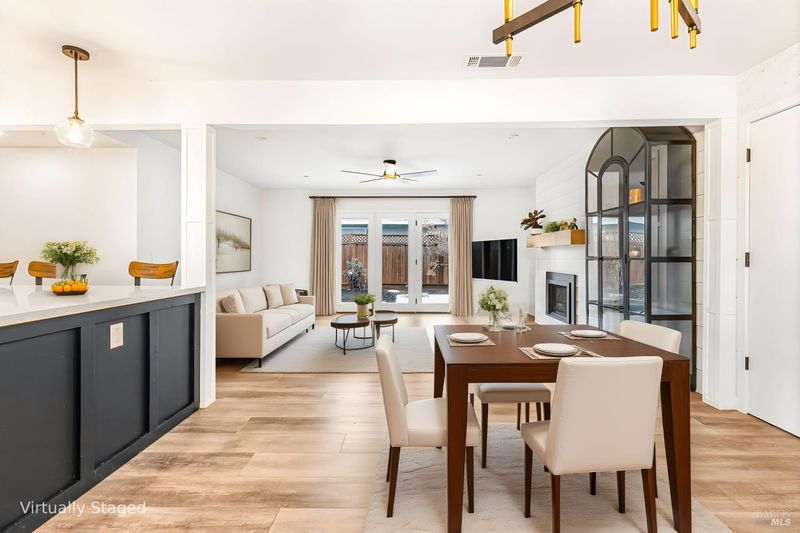 Blending classic comfort with modern upgrades, this fully renovated East Petaluma home showcases the best of convenient, stylish living. This single-story residence is filled with natural light and offers effortless living and thoughtful design throughout. Entertainers and home chefs will appreciate the stunning, fully updated kitchen featuring shaker cabinetry, quartz countertops, open shelving, premium appliances, and designer finishes. The home includes 3 bedrooms and 2 bathrooms, along with an attached two-car garageall crafted for maximum comfort and functionality. Vinyl plank flooring, gas fireplace inserts, a shiplap feature wall, and designer lighting add character and ambiance. French doors off the living room lead to your own backyard oasis, where a spacious patio creates the perfect setting for outdoor dining and entertaining. Situated on a corner lot with a 3-car driveway, there's plenty of room for weekend toys, an RV, and more. Don't forget about the community pool that's located just down the street.