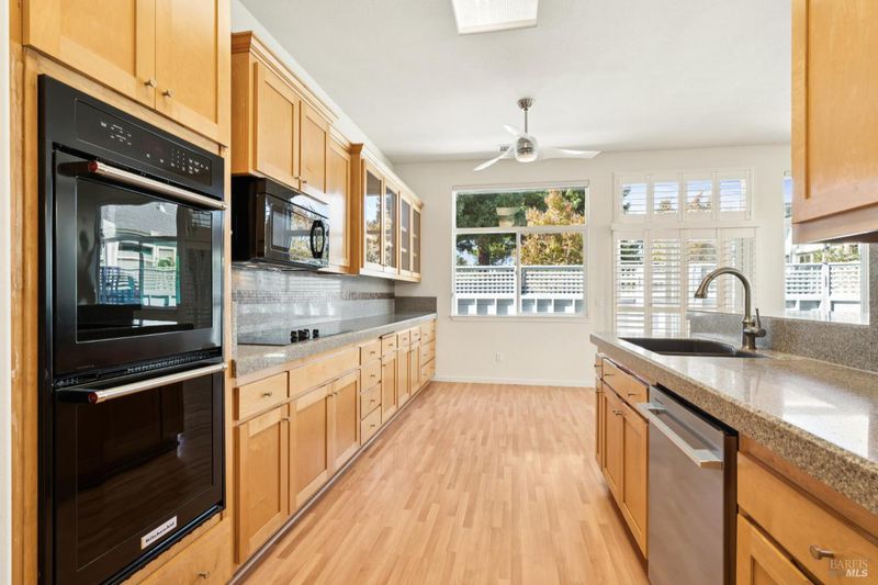 Tucked down a private lane off the main drive, welcome to this bright and inviting single-level home in the Quail Run subdivision of Oakmont, Sonoma County's thriving 55+ community. Framed by majestic redwood trees, this Plan 3 model has an open floor plan and abundant natural light. The kitchen features newer appliances, maple cabinetry, solid surface counters, and a handy pantry. From the nearby dining area, step outside to the patio and enjoy the secluded setting and connection to nature. Just off the living room is a den with built-in shelving that can easily serve as another bedroom. Beyond the main living areas, the primary suite includes a sunny nook for reading or exercise, a walk-in closet, and bathroom with dual sinks. A guest room, hall bath, and laundry are well-situated away from the primary suite. Owned solar and new roof were installed in 2022, and the interior was freshly painted in 2025. Living in Oakmont means having an array of amenities at your fingertips, including two golf courses, three clubhouses, swimming pools, fitness centers, sport courts, and more. It's a community designed for both leisure and activity, with something for every lifestyle. Comfortable and welcoming - this home is ready to be your next chapter.