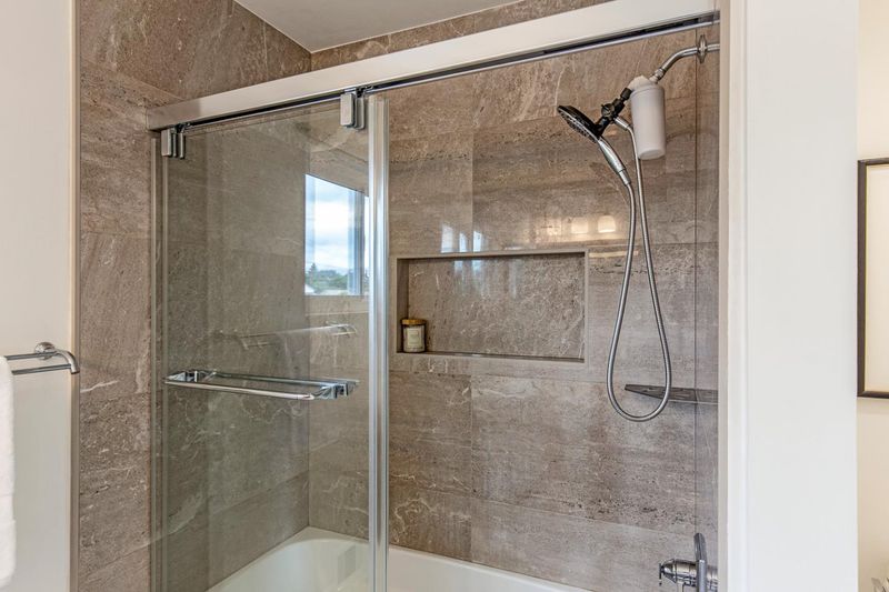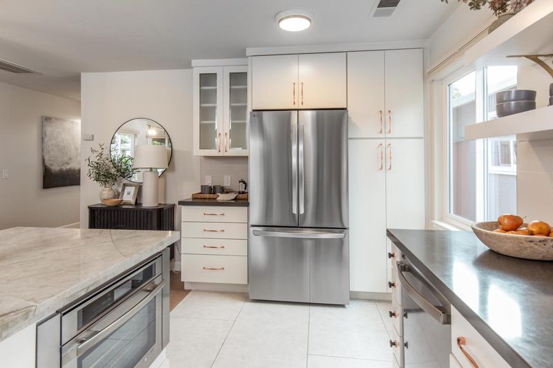Beautifully remodeled with turnkey appeal, this North Fair Oaks gem showcases modern livability midway between Silicon Valley and San Francisco. The flexible two-story layout features two bedrooms and two remodeled baths, all enhanced by a palette of soft designer colors and white oak engineered hardwood floors. The open living area at the entrance has a modern chandelier and connects seamlessly to the sleek kitchen with a quartzite-topped peninsula with counter seating, custom suspended vent hood, and stainless steel appliances. At the rear of the home is a spacious family room that opens to the private paver-finished rear yard. A main-level bedroom and bath are complemented by the upstairs primary suite with walk-in closet, western hill views, and well-appointed bathroom. Smart features include a Ring doorbell, keyless front entry, and a smart thermostat along with central air conditioning. Roses, geraniums, and a camellia enliven the setting, which has ample off-street parking and an attached 1-car garage. Just blocks from the Redwood City Stanford campus and minutes to Meta headquarters and Highway 101.