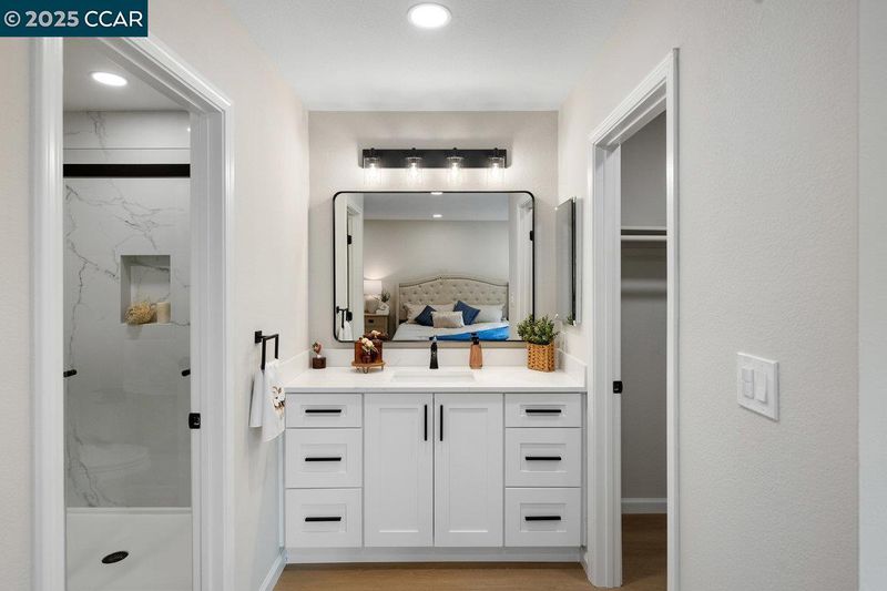 - Shower Over Tub, Solid Surface, Tile, Other, Double Vanity