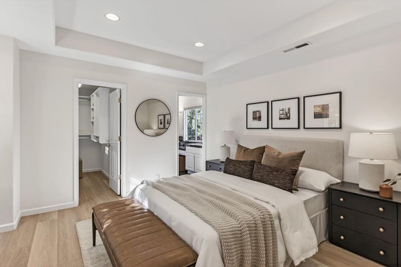 Recently remodeled to exude contemporary sophistication, this stunning residence perfectly blends modern architectural style with the comfort of a spacious, open-concept floor plan. Defined by soaring high ceilings and an abundance of natural light, the home features massive windows and transoms that create a seamless, airy connection to the outdoors. Both levels are finished with beautiful hardwood flooring, leading to an upper level where every bedroom is oversizedeasily accommodating both king-sized beds and full office setups for a growing family. The heart of the home is a chefs kitchen with white quartz countertops that flows effortlessly into the family room. A standout feature is the versatile main-level guest suite; completely separated for ultimate privacy, it includes a full bath and a clever built-in bed within the closet to maximize utility. Located in a premier 94041 neighborhood with an elite school district (7, 7, 10 ratings for Landels, Graham, and Mountain View High), you are just minutes from Google, LinkedIn, Microsoft, and Amazon headquarters. This is a sun-drenched, modern sanctuary designed for space and connectivity in the heart of Silicon Valley.