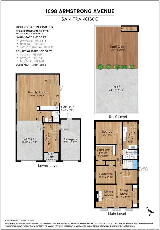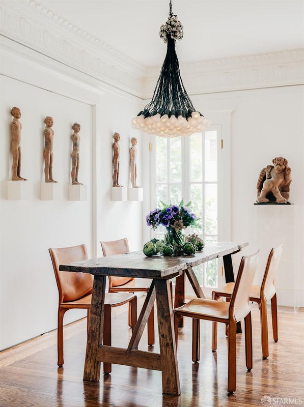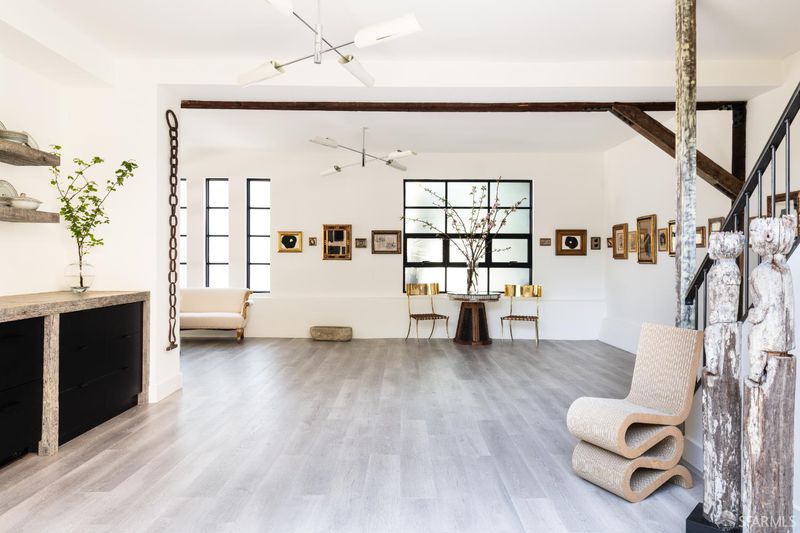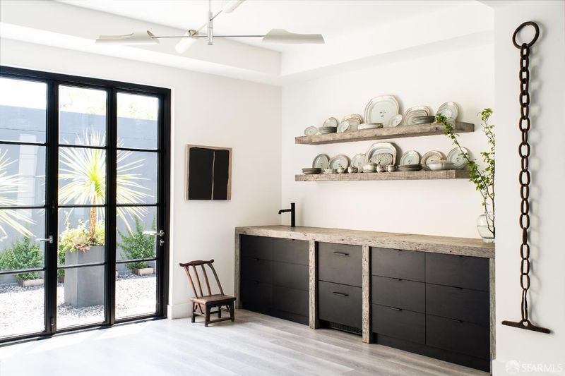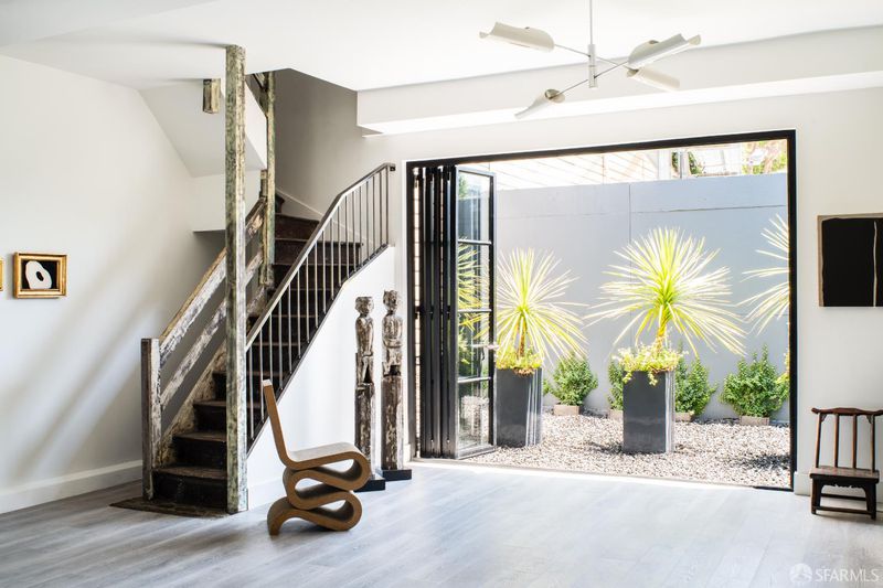 1698 Armstrong Avenue is a unique and curated home owned by a professional designer, combining stunning architecture with a sophisticated design. This one-of-a-kind home offers a bright living/dining room with ornate crown molding, a gas fireplace, and three French doors leading to a Juliet balcony. Down the hall are three bedrooms (one currently being used as a walk-in closet), and a sun-lit, spa-like bathroom. An efficient kitchen features a separate pantry/laundry area and provides access to the sun-filled roof deck with western & southern exposure. The lower level of the home hosts of a spacious family room / event space with bi-fold doors opening to a lovely courtyard, a half bath, and access to two separate garages. This vibrant neighborhood will soon be home to one of the biggest waterfront parks, and is a straight shot to the Dogpatch, Mission Bay and Potrero (via 3rd Street).