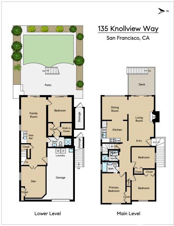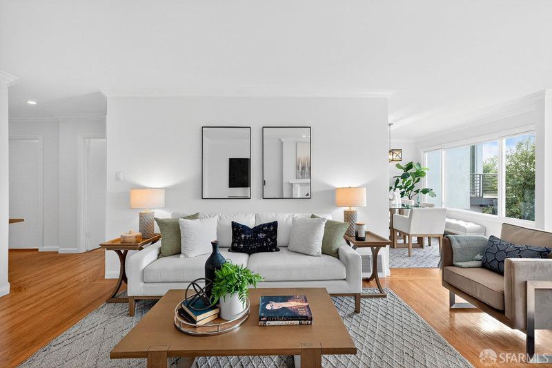 Discover this classic detached Midtown Terrace home, a true gem in a prime location. Encompassing a generous 2,190 sq ft, this residence boasts a versatile floor plan with 3 bedrooms and 2 full bathrooms on the main level and a spacious primary suite bedroom, family room with wet bar, and a den ( or 5th bedroom) on the lower level. Step outside to enjoy the tranquil flat yard, easily accessible from the spacious upper level Ipe deck, family room or bedroom on the first level. Modern conveniences include double pane windows throughout, newer appliances, custom window coverings and stunning hardwood floors on the upper level. The home also features a one-car garage with a laundry area and a storage shed in the back yard. Located in the perfect spot with no front or rear neighbors, it offers serene vistas for a peaceful living experience while the City amenities are easily accessible. West Portal & Inner Sunset shops and restaurants, Forest Hill Muni Station, playgrounds, hiking, bus & freeway access are all close by. This is a rare opportunity!