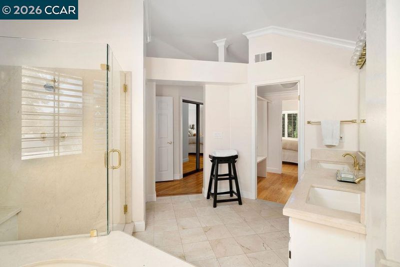 This end-unit is located on an oversized, north-east facing corner lot with a manicured yard in Danville’s gated Blackhawk community. Extensively upgraded with substantial structural investment beyond cosmetic improvements, the home features a brand-new roof and a new energy-efficient HVAC system, offering long-term ownership stability. The interior showcases true solid oak hardwood flooring with custom walnut inlays, crown molding and baseboards throughout. High-end Crema Marfil marble enhances the entryway, fireplace mantel, and entire primary bathroom. The kitchen includes a new dishwasher and high-end appliances. All bathrooms are fitted with Kohler toilets. Exterior improvements include a newly stained waterproof deck, oak fencing, and a pressure-treated retaining wall. The finished garage features durable rubber flooring. Includes Section 1 termite clearance. Located near Blackhawk Plaza and top-rated schools, this property combines major capital improvements with refined custom finishes.
