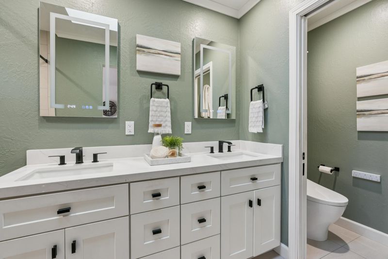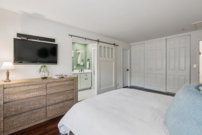 10+ Absolutely updated throughout & charming as can BE! This one story, stair-averse single family home truly has it all. Magnificent Open layout, vaulted ceilings w/ wood beams + skylights + attached 2 car garage. Welcoming family room offers abundant light + double-sided gas fireplace. Gourmet kitchen includes a cherry Viking range & copper hood, extra deep kitchen sink w/ pull down faucet, Quartz slab counters & Bosch dishwasher. 2 pantry areas round out a kitchen that’s as stylish as it is practical. You’ll dream of retreating nightly to this dreamy Primary Suite: the primary bath delights w/ heated tile floors, heated towel rack, gorgeous tile shower w/ linear drain, shampoo nook, edgeless shower door, dual-sink vanity, smart LED mirrors + a Toto toilet w/ bidet, this spa-inspired bath is finished w/ handsome barn door for a touch of rustic charm. Wonderful details: Hardwood floors, indoor laundry, EV charging station, central vacuum, private yard space w/ new landscape/hardscape. Great court location!