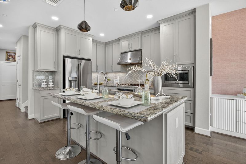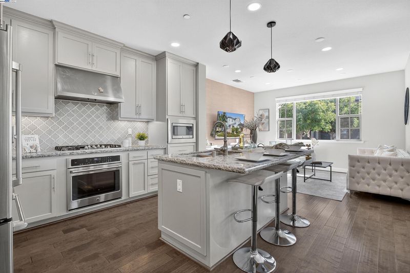 - Dishwasher, Double Oven, Electric Range, Microwave, Oven, Refrigerator, Dryer, Washer, Tankless Water Heater, Breakfast Bar, Counter - Solid Surface, Eat-in Kitchen, Electric Range/Cooktop, Disposal, Kitchen Island, Oven Built-in, Updated Kitchen