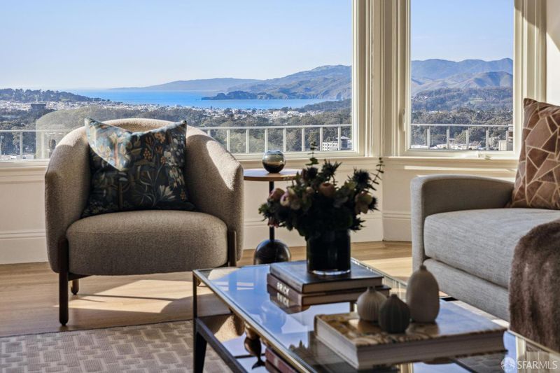 Imagine waking to 180 degrees of pure possibility - across the city to the Golden Gate commanding the horizon, the Pacific stretching to forever. This is a view that recalibrates you, fills your lungs and reminds you, every single day, why you chose this city and this life. At the end of the day, you return to your quiet cul-de-sac at the geographic heart of San Francisco, high above the hum of the city. The sky transforms gold, rose, violet. You settle in, exhale. You're home. Penthouse flat with panoramic views - Pacific Ocean, GG Bridge, GG Park, Marin Headlands, Sutro Hts, St Ignatius. Top-floor 2BD/1BA + office in a well-run 2-unit building in the iconic Mt. Olympus neighborhood. Sweeping views from living room and both bedrooms. Big living room with fireplace and plate glass window. Full-size dining room flooded with light. Remodeled kitchen in mid-century style with Twin Peaks views. Luxury bath. Separate laundry room. Newly refinished hardwood floors, custom fixtures, roof rights deeded to unit. 1-car garage with EV charger, additional storage, exercise room. Location puts you in the middle of the city but above the fray. Quiet residential neighborhood but just minutes from Cole Valley's coffee shops and eateries, Haight Street's unique commercial offerings, the Castro's iconic cultural heft. Beautifully terraced Mt Olympus Park at end of block; huge Buena Vista Park & Corona Hts Park just a bit further for dog walks & recreation. MUNI all around. A rare opportunity to live above it all without leaving the heart of the city.This is the balance San Franciscans spend years searching for - vibrant city life, genuine neighborhood serenity, and a home that takes your breath away every time you walk through the door.
