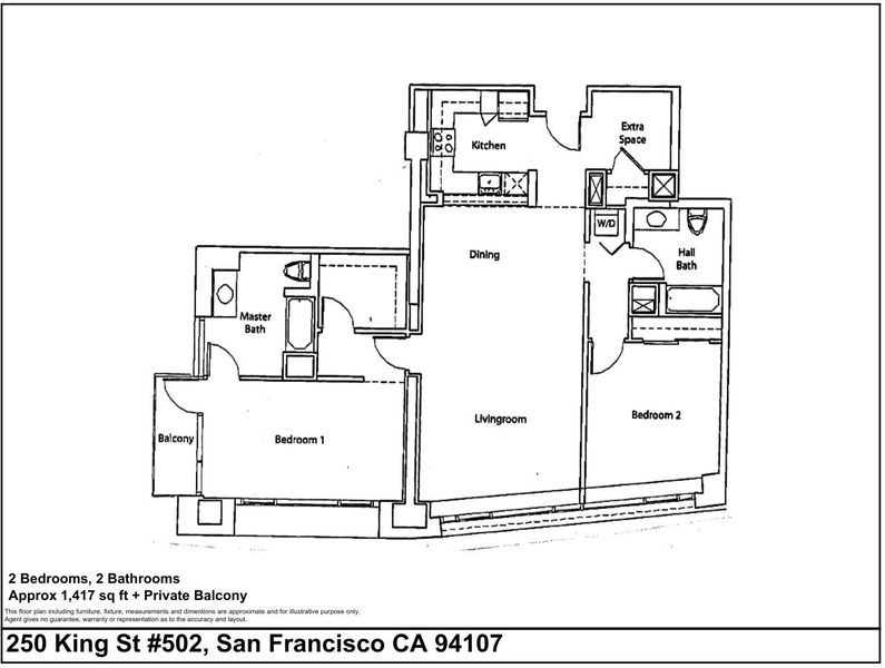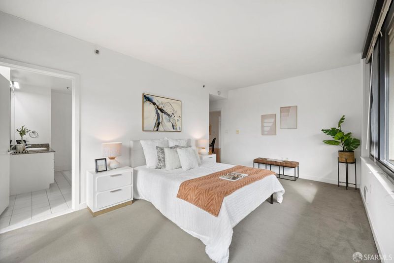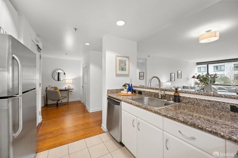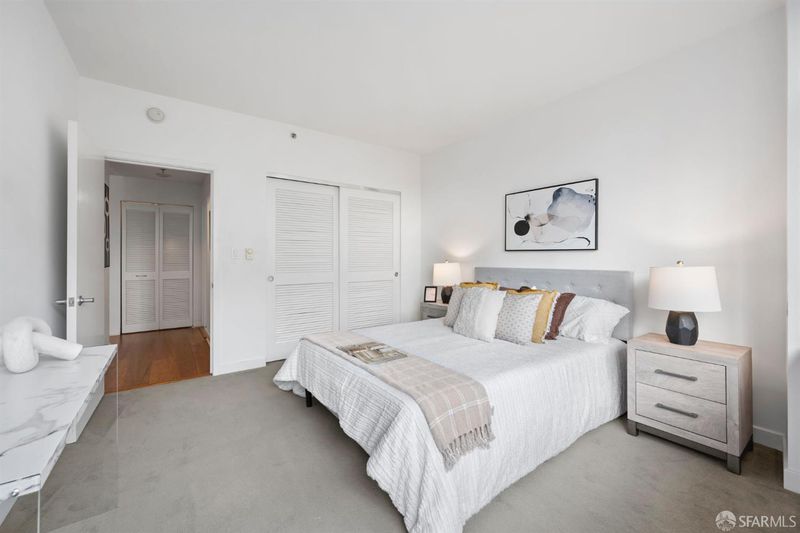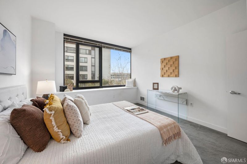 This expansive 2BR 2BA plus den corner residence at The Beacon offers over 1417 sq ft of rare, sophisticated living with a versatile den that can be enclosed for added privacy. The home opens to a massing living area filled with natural light and a modern kitchen with granite counters and stainless appliances that flows seamlessly for effortless entertaining. The corner primary suite showcases dramatic floor to ceiling windows and its own private balcony overlooking tranquil trees, the swimming pool, and peaceful courtyard scenery. A generous walk in closet and serene separation from the living spaces create a true retreat. The second bedroom sits on the opposite wing for ideal privacy, while the den enhances work from home flexibility. With in unit laundry, assigned parking, and resort style amenities including a heated pool, spas, saunas, fitness center, business lounge, 24 hour concierge, earthquake insurance, and a beautifully maintained dog park, this home delivers unmatched comfort and convenience. Live directly above Safeway and Starbucks, steps to Caltrain, Muni, Oracle Park, Chase Center, dining, cafes, and the waterfront, with easy access to I 280, BART, and the Bay Bridge for the ultimate blend of city energy and calm modern living