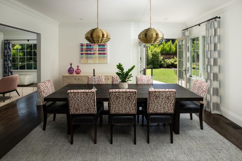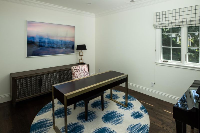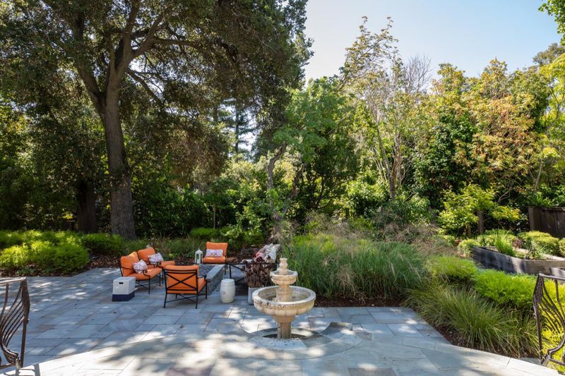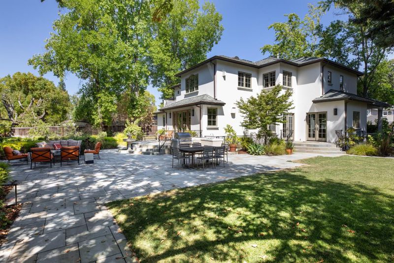 Beautiful custom built home on a premier cul-de-sac in prime West Menlo Park, this elegant home blends timeless design with modern luxury. A two-story foyer introduces light-filled interiors with hardwood floors throughout. The living room has a gas fireplace and the adjacent dedicated office has exterior entry. Spacious formal dining room with doors to the lush rear yard. Remodeled kitchen with custom cabinetry, quartz counters, chevron marble backsplash, and top-of-the-line appliances, including Sub-Zero side by side refrigerator and additional frig drawers, opening to a spacious family room with fireplace and French doors for seamless indoor/outdoor living. Upstairs includes a luxurious primary suite, fireplace, sitting area, balcony, couture closet, and stunning new bath with free standing tub and Toto Washlet. Two additional bedroom suites and a dedicated office or potential for 4th upstairs bedroom. The lower level offers a recreation room, fitness studio, bedroom, and guest suite with Murphy bed and patio access. The huge private backyard oasis features a spa, barbecue center, fire pit, bluestone patio, perimeter trees, raised vegetable beds, and creekside setting. Additional features: solar, slate roof, copper gutters, security, sound, and excellent Menlo Park schools.