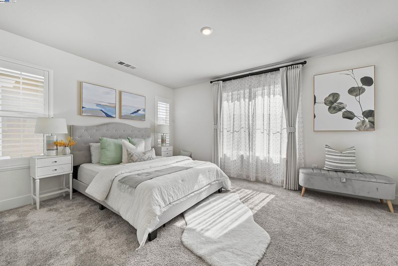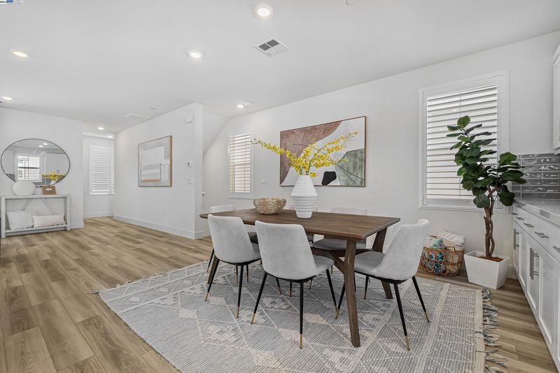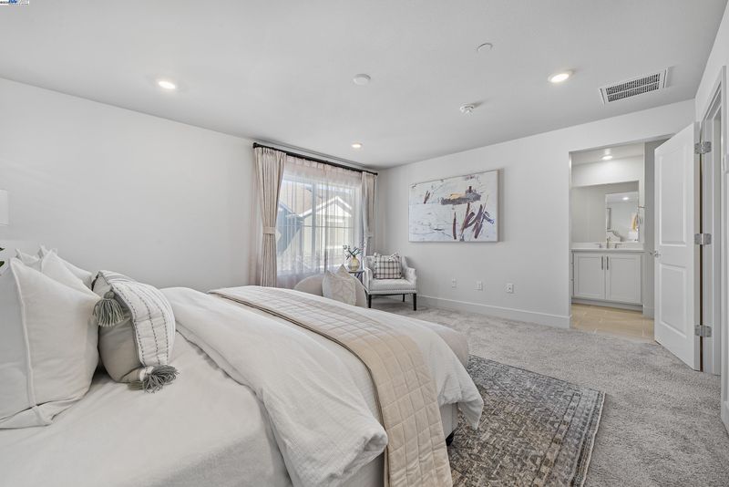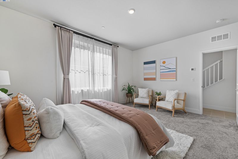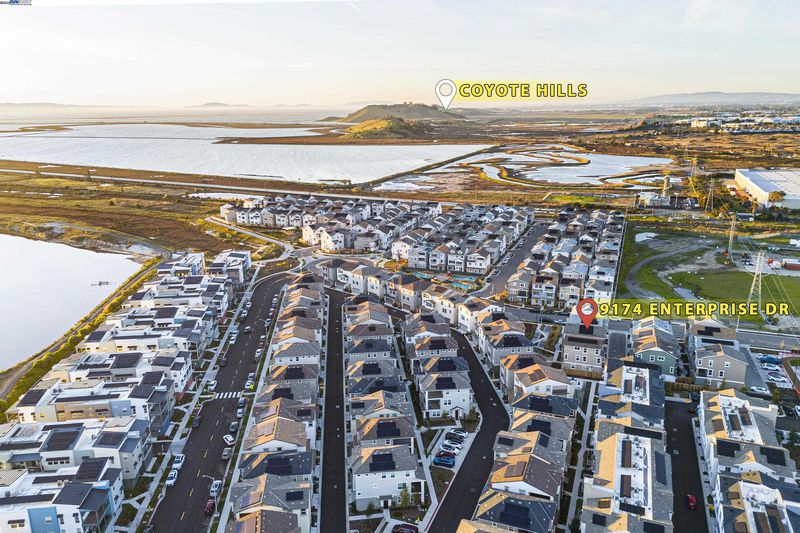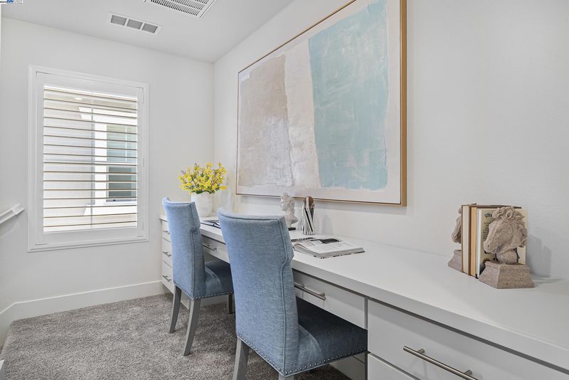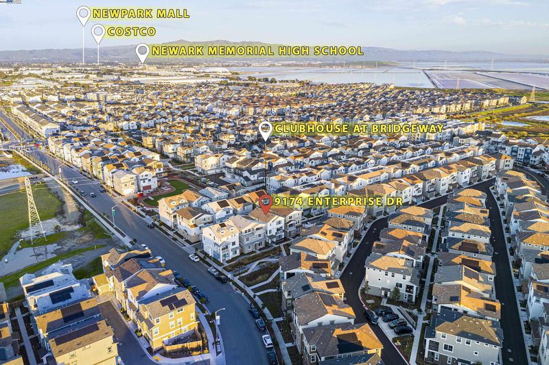 A modern home boasts a great floor plan featuring 3 spacious bedrooms and 3.5 luxurious bathrooms, each bedroom providing the ultimate privacy with its own en-suite bathroom.One bedroom and one bathroom are located on the first floor. One may enjoy the bright open spaces as natural light floods the home on a prime location.Upgraded flooring and plush carpet are throughout the home.The kitchen stands as a centerpiece, showcasing a full backsplash, quartz countertops, and sleek stainless steel appliances, seamlessly connecting to California Room—ideal for entertaining. Custom Hunter Douglas shutters and drapes add a touch of elegance to every window while the primary bedroom offers a customized closet system and tranquil en-suite. On the third floor, there are built-in desk and cabinets, perfect for a home office setup. The garage has been upgraded with walls and electric car charging station prep. The solar panel system has been fully paid-off. Bridgeway residents enjoy a host of amenities like a clubhouse, a swimming pool, dog park, and playground. Nearby National Wildlife Refuge offers open space with trails and nature to explore. The communicty is close to Meta and Tesla, among other major employers. Easy access to Dumbarton bridge and I-880.