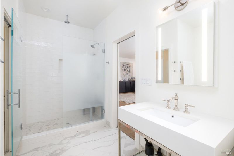 Healdsburg-an exquisite 1938c home effortlessly blending vintage charm w modern elegance. Nestled in a premier locale. this meticulously remodeled residence offers 2,681 +/-sqft of refined living space. Step inside to discover an inviting open-concept layout, ideal for both intimate gatherings or grand entertaining. The main residence boasts 3 spacious ensuite-bedrooms + office + 3.5 beautifully appointed bathrooms. Thoughtful design touches harmonize period details w contemporary conveniences, showcasing high-end finishes & designer elements throughout. The heart of the home features expansive living areas bathed in natural light, seamlessly connecting to a chef's kitchen w contemporary appliances, custom cabinetry & bespoke countertops - a perfect blend of functionality & style. This private entertainers' yard is a true sanctuary hosting a 826+/-sqft guest house providing another full BR & BA serving as a luxurious retreat for visitors while also a glamorous repose poolside. A fabulous resort-style outdoor space creates a haven of relaxation & entertainment, featuring a stunning recreational pool w spa & waterfall, flaming gas fire pit + outdoor BBQ center, multiple zones for al-fresco dining & lounging. Mature 50+ yr old olive trees along w interlinking patio & lawn areas
