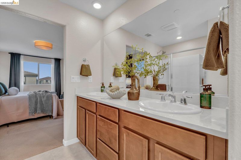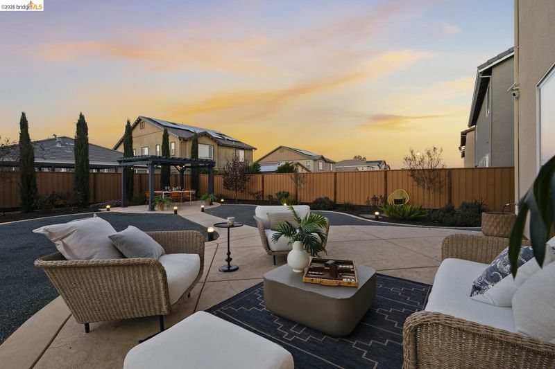 Welcome to your dream home, where modern living meets effortless sophistication. Set on a premium 6,639 sq. ft. lot, this stunning home offers endless possibilities-host gatherings, add a pool, or create an ADU tailored to your needs. Inside, every detail shines with elegance and practicality. The open-concept kitchen, dining, and living areas boast upgraded laminate flooring, high-end appliances, chic West Elm lighting, and custom drapery. A walk-in pantry offers ample storage space. With 3 spacious bedrooms and 2.5 beautifully designed baths, including a serene primary suite with a walk-in closet, comfort is at every turn. A versatile loft with upgraded laminate flooring adds flexibility-perfect as an office, cozy retreat, or potential 4th bedroom. Sustainability and convenience come standard with owned solar panels and a Tesla-ready garage. The pre-installed security cameras provide added peace of mind. The gated community offers an array of amenities: a sparkling pool, stylish clubhouse, parks, playgrounds, a pickleball court, and BBQ area. Located in the sought-after Brentwood school district, the home is just minutes from Costco, Trader Joe's, the Streets of Brentwood, and more, with easy access to Highway 4 and Antioch BART for stress-free commuting.