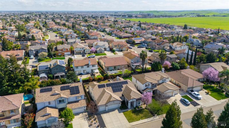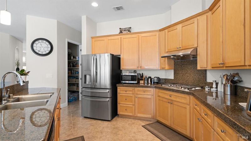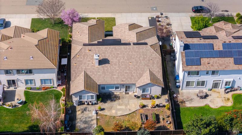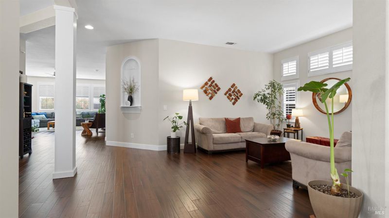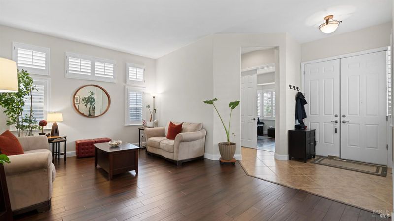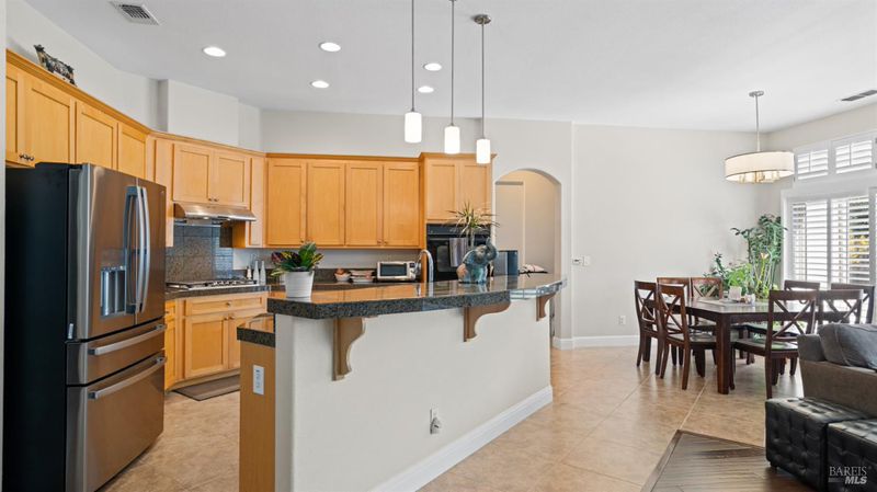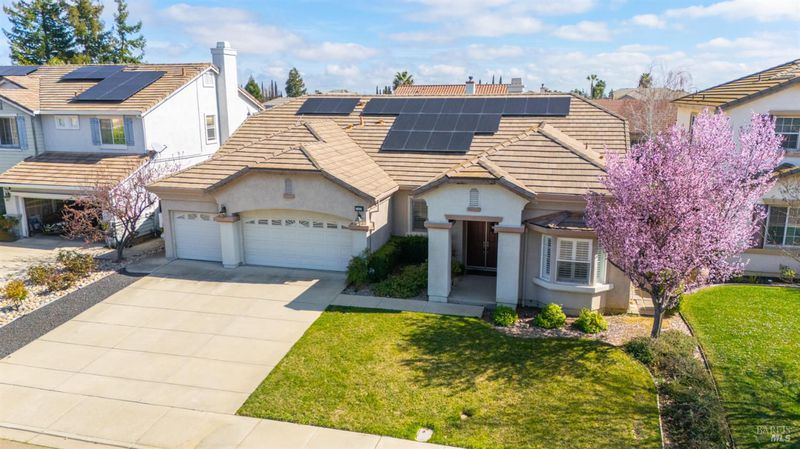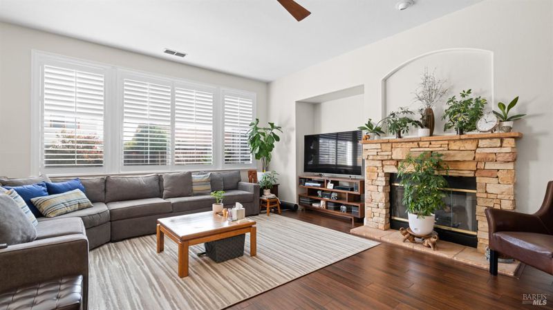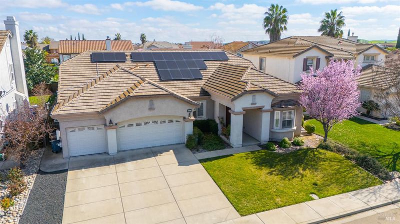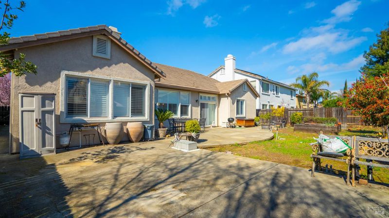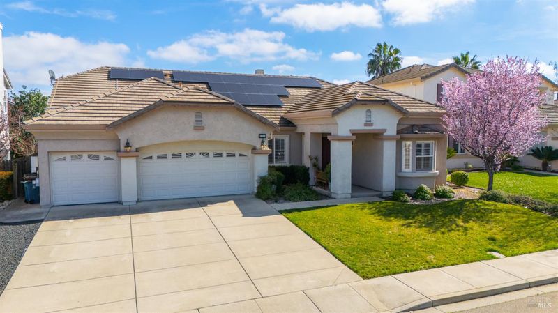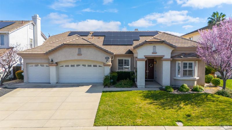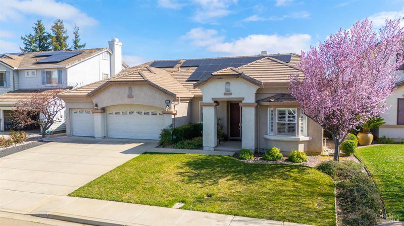 This charming single-level home features a spacious open floor plan encompassing 2,888 square feet, with four bedrooms and two and half bathrooms. The property includes a formal living room and dining room, along with a generous family room complete with a fireplace. The elegant kitchen boasts granite tile countertops, a raised breakfast bar, and stainless steel appliances. The large primary suite is enhanced by plantation shutters and a sliding door that opens to the backyard. The spa-like bathroom includes a soaking tub, a walk-in shower, and an expansive walk-in closet. The backyard is adorned with mature fruit trees and a substantial concrete patio, awaiting your personal touch. Additionally, the home features a three-car garage and has owned solar panels.
