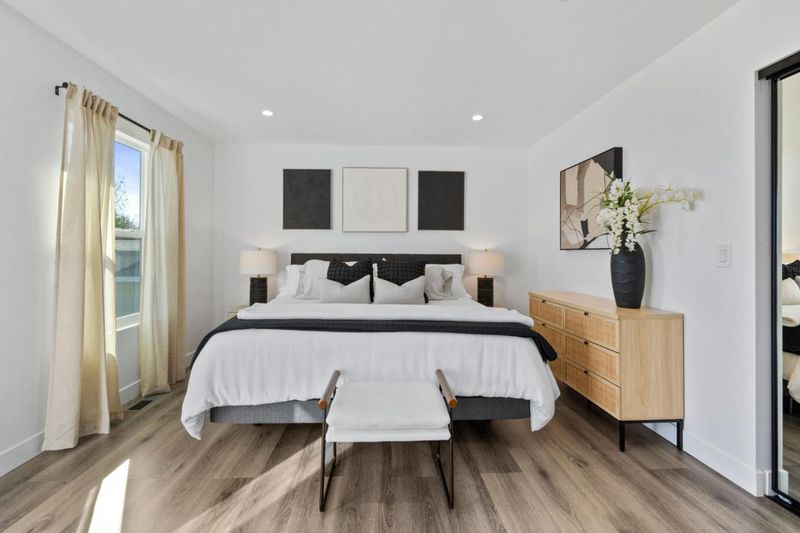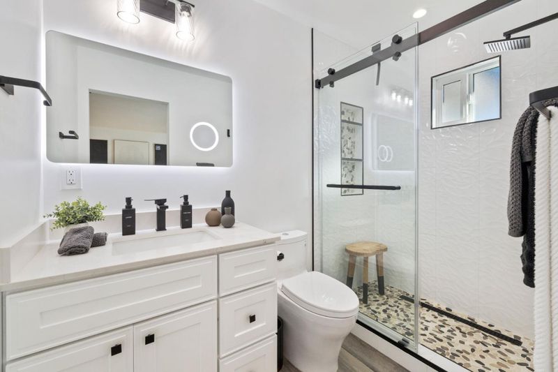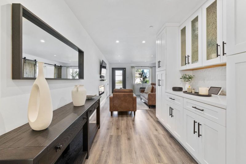 Experience modern elegance in this fully renovated 2024 architectural gem in Castro Valley. This 3-bedroom, 2-bathroom home offers 1,389 sq. ft. of luxurious living space on a 6,292 sq. ft. lot, designed with high-end finishes and expert craftsmanship. Step inside to recessed lighting, a statement chandelier, large picture windows flooding the space with natural light. Luxury laminate flooring and sleek barn doors add a contemporary touch. The custom chefs kitchen boasts top-tier stainless steel appliances, a custom pantry, and elegant finishes. Spa-like bathrooms feature LED mirrors with defogging and magnifying technology, matte black fixtures, and a rainfall shower. Custom closets enhance each bedrooms functionality and style. Sprinkler system with home hydrant system & fire bell. Built in security system. Relax on the TrekDeck balcony with stunning city views. Energy efficiency is ensured with whole-house insulation and a new HVAC system. Backyard is professionally landscape with low maintenance and drought resistant plants. Perfect for entertaining or private sanctuary. Top-rated school districts, Chabot Lake, Redwood Canyon Golf Course, and major freeways, this home offers both luxury and convenience. Make this your home!