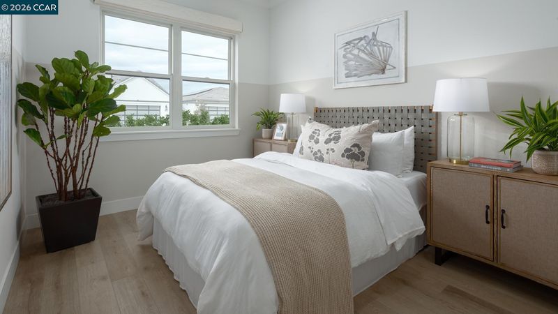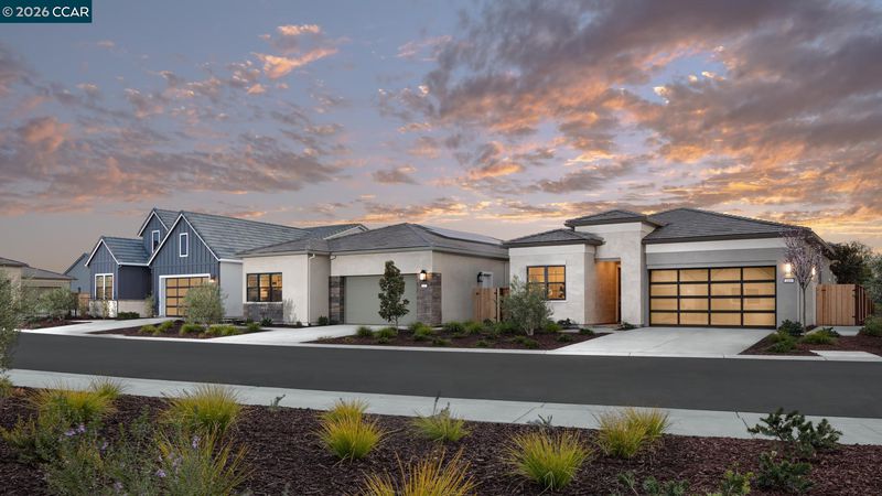 Welcome to Regency at Tracy Lakes 55+ Active Adult gated community where luxury living takes center stage. With three picturesque lakes, this vibrant community offers a fishing dock, 1-acre community garden and dog park. A wealth of amenities, including a clubhouse, pools, cabanas, yoga studio, fitness center, bocce ball, and pickleball courts, every day is an opportunity for relaxation and recreation. The onsite lifestyle director ensures there’s always something to look forward to; from fitness classes to comedy shows and wine nights. Stylish kitchen features a center island with breakfast bar, stainless steel appliances, 36" gas cooktop, modern cabinets, tile backsplash and quartz countertops. Primary bedroom suite offers a walk-in closet, spa-like bath, dual-sink vanity, a large luxe shower with seat. Thoughtfully designed interior finishes include elegant craftsmanship with 10-foot ceilings, 8-foot doors, 5 1/4" baseboards. Additional highlights include a workspace, two-car garage and HOA maintained front yard offering a low-maintenance lifestyle. (photos not of actual home or yard, for marketing only)