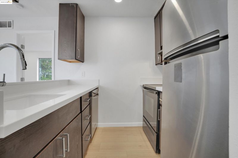 Welcome to this beautifully updated, light-filled ground-level condo in the desirable Alquire Oaks community. This move-in-ready home offers 489 sq ft of modern comfort with brand-new luxury vinyl plank flooring, fresh interior paint, and an open living area filled with natural light. The updated kitchen features new quartz countertops, refreshed cabinetry, new water fixtures, and updated lighting for a clean, contemporary feel with added functionality. The spacious bedroom offers a peaceful retreat, while the fully renovated bathroom includes a new vanity with quartz countertop, new quartz shower enclosure, new tub, modern fixtures, and brighter lighting for a spa-like experience. Additional conveniences include an in-unit washer and dryer and a private garage for secure parking and storage. Alquire Oaks residents enjoy a community pool, well-kept grounds, and ample guest parking. The location is incredibly convenient—just minutes from BART, HWY 880, Industrial Pkwy, Costco, Target, Starbucks, and everyday amenities. Outdoor enthusiasts will love nearby Garin Regional Park, scenic trails, and Mission Hills Golf Course. Stylishly updated and filled with natural light, this charming condo is the perfect place to call home. [Some photos virtually staged]