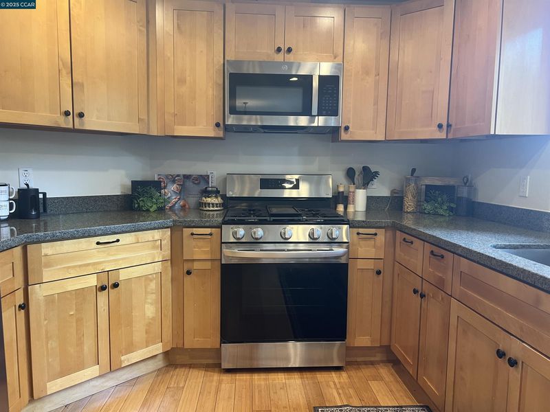 - Dishwasher, Gas Range, Range, Refrigerator, 220 Volt Outlet, Counter - Solid Surface, Disposal, Gas Range/Cooktop, Range/Oven Built-in