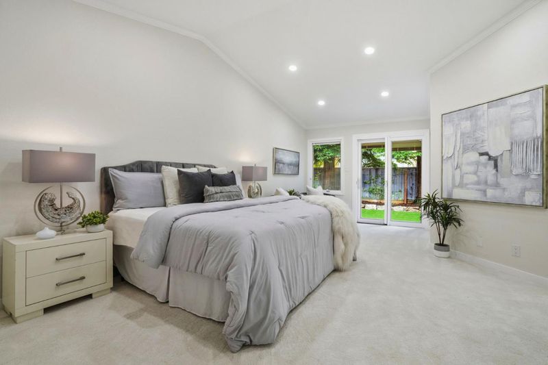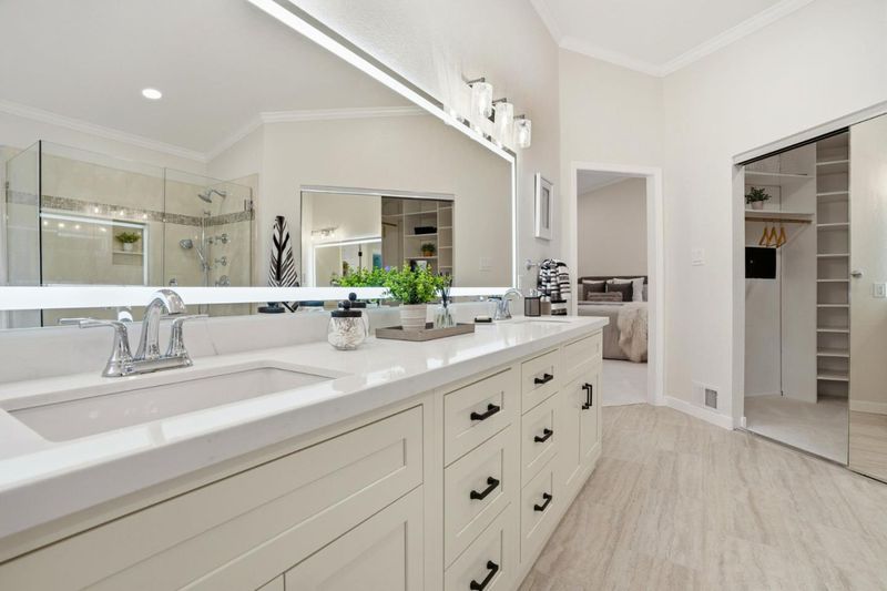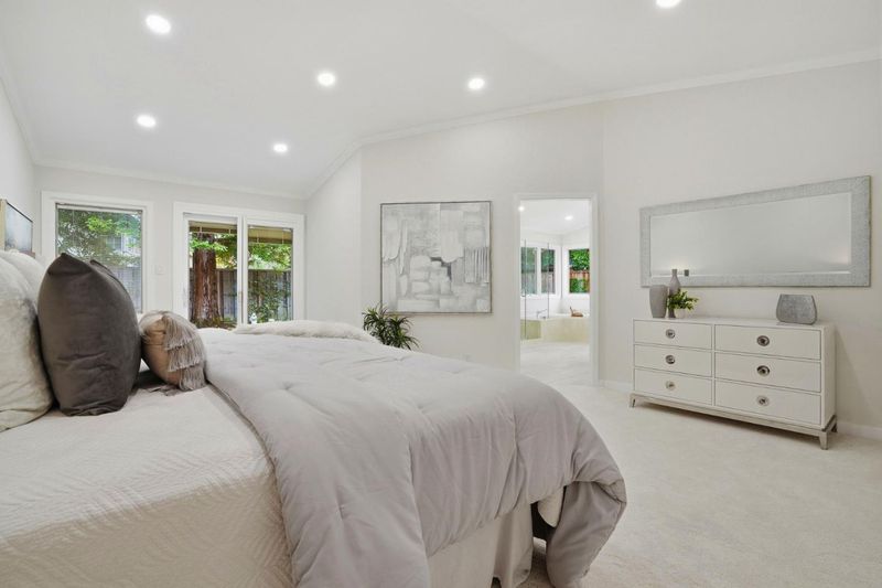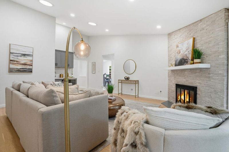 This three-bedroom, two-and-a-half-bathroom single-story home offers approximately 2,470 square feet of living space. The open-concept living area seamlessly integrates the kitchen, dining, and living room, creating an inviting atmosphere for entertaining or daily living. The kitchen boasts a large center island, abundant cabinetry, and high-end appliances. Sliding glass doors open to a private outdoor patio, providing a seamless transition between indoor and outdoor living. The primary bedroom features ample natural light and an en-suite bathroom with dual sinks and a walk-in shower, and an oversized soaking tub. The two additional bedrooms are well-proportioned and provide versatile space for personal use or as home offices. The remaining bathrooms are appointed with modern fixtures and finishes, natural stone, and ceramic tile. The property features a professionally landscaped yard mixed with mature landscaping, offering a serene and peaceful retreat. The attached 3-car garage also provides additional storage space. This home is situated in a desirable neighborhood on a quiet street. All this with the benefit of solar panels and highly ranked local schools.