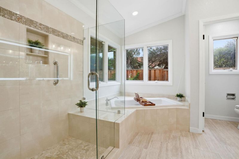 - Double Sinks, Full on Ground Floor, Oversized Tub, Primary - Oversized Tub, Primary - Stall Shower(s), Shower over Tub - 1, Stall Shower, Updated Bath