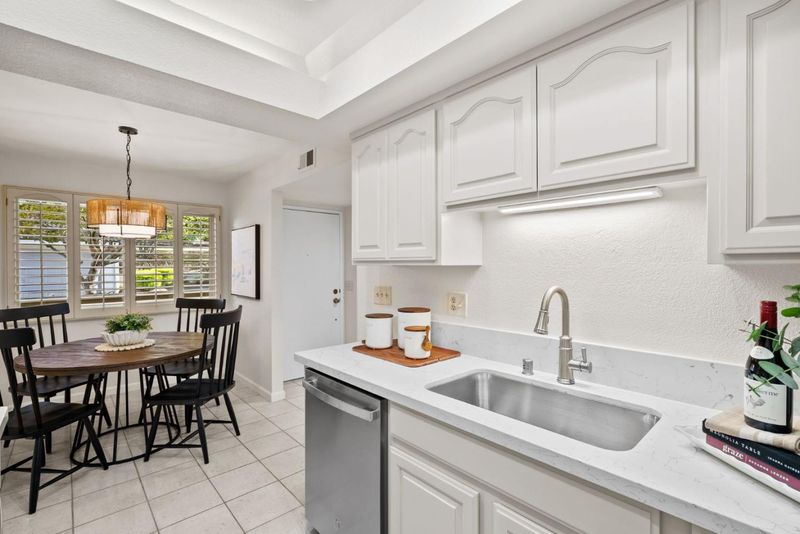Beautifully positioned on the water, this elegant townhome embodies resort-style living within the coveted gated community of Rinconada Hills. With its prime lakefront setting and light-filled interiors, the home seamlessly combines modern sophistication, timeless design, and the tranquility of nature. Thoughtful updates include new plush carpet, fresh interior paint, and curated lighting throughout. The reimagined kitchen showcases sleek quartz countertops, new stainless steel appliances, and a cheerful breakfast nook opening to the dining and living areas. A dramatic staircase and soaring ceilings adds architectural elegance, while sliding doors extend the living space onto a brand new private deck overlooking the lake - an idyllic spot for morning coffee or sunset gatherings. Upstairs, the serene primary suite offers a spacious large walk-in closet and private balcony recently rebuilt. Additional highlights include central A/C, a new water heater, a convenient laundry room, and a detached two-car garage. Set within a private 107-acre enclave, Rinconada Hills offers resort-style amenities including pools, tennis and pickleball courts, bocce, walking trails, waterfalls, and a clubhouse - all within minutes of downtown Los Gatos, Bay Club Courtside, and award-winning schools.