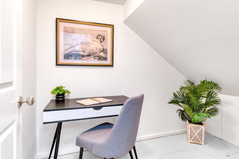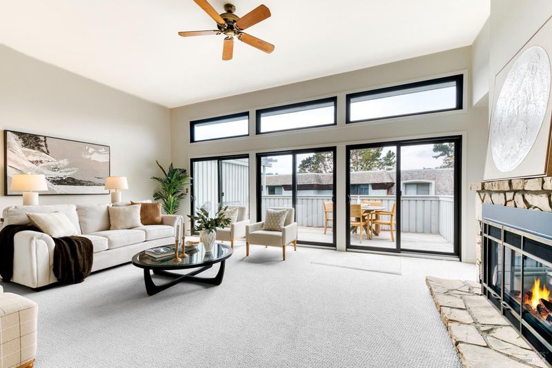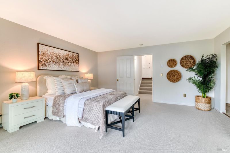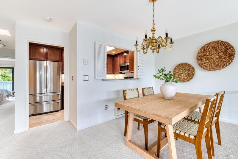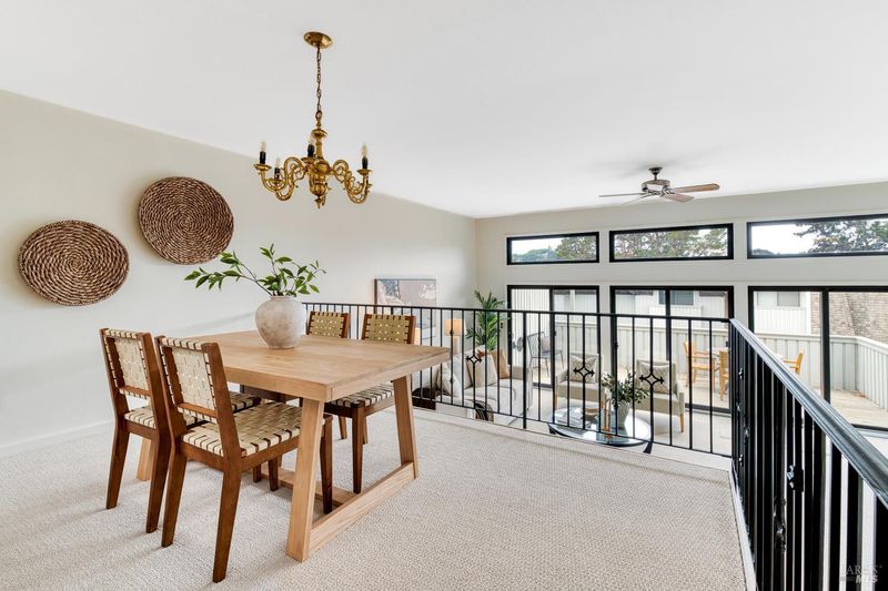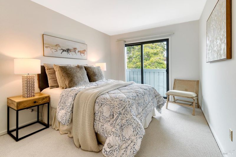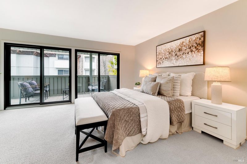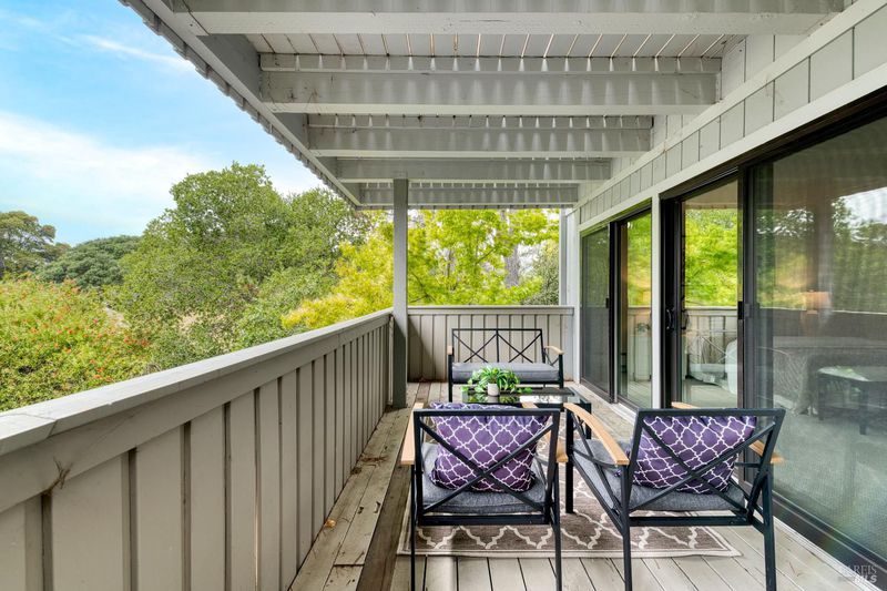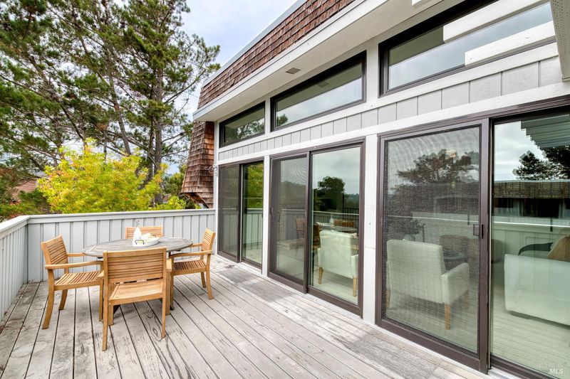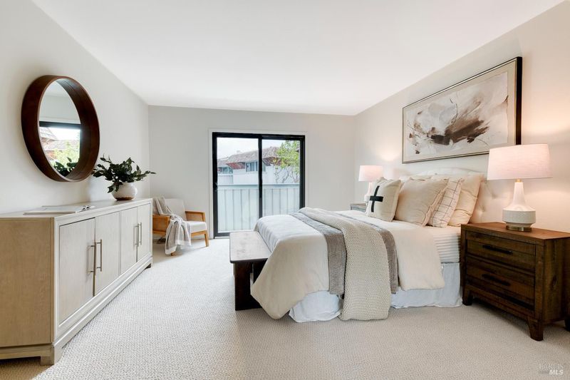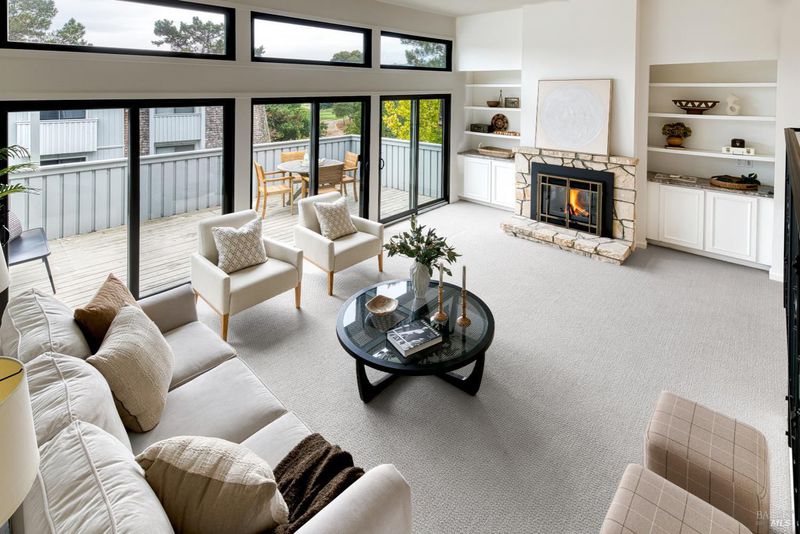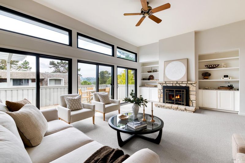 Beautifully updated tri-level townhouse in the desirable Peacock Gap neighborhood. This rarely available end-unit offers an open-concept design filled with natural light and framed by peaceful, scenic views. The inviting living room features a charming brick fireplace, built-in bookshelves, and expansive windows that bring the outdoors in. The updated kitchen and dining area flow seamlessly together, creating the perfect space for entertaining family and friends. The kitchen is equipped with newer stainless-steel appliances and offers direct access to the main living area for easy everyday living. Downstairs, the spacious primary suite serves as a private retreat with a walk-in closet, generous en-suite bathroom, and a secluded deck surrounded by nature. Upstairs, two additional bedrooms each feature skylights and private balconies, creating bright and relaxing spaces to unwind. An attached two-car garage provides ample storage, while the main deck offers the perfect setting to enjoy the tranquil greenery and Marin's signature natural beauty. Ideally located near McNears Beach, China Camp State Park, scenic hiking and biking trails, and Andy's Market, this home combines comfort, convenience, and a true connection to the outdoors.