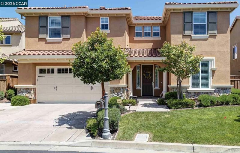 Elegant home located in the prestigious gated community of Stonebrae Country Club. This beautifully designed residence features an open and inviting floor plan. Expansive ceilings and clerestory windows fill the formal living and dining rooms with abundant natural light. The gourmet kitchen is designed for both everyday living and entertaining, offering a large center island, granite countertops, rich cherry cabinetry and stainless steel appliances. The adjoining family room provides a warm and comfortable setting with a fireplace and large windows overlooking the backyard. The main level includes a bedroom and full bathroom, along with a versatile office or media room ideal for working from home or additional living space. Upstairs, the spacious primary suite offers a large walk-in closet, and a luxurious bathroom with a soaking tub, separate shower, dual vanities with a seated vanity area, and a private dressing space. The second floor also includes four additional bedrooms, a full bathroom, and a convenient laundry room. Additional features include dual-zone heating and air conditioning, recessed lighting, surround sound, pre-wired media connections, and a tankless water heater. The landscaped backyard and side yard feature a patio, lawn, and fruit trees.