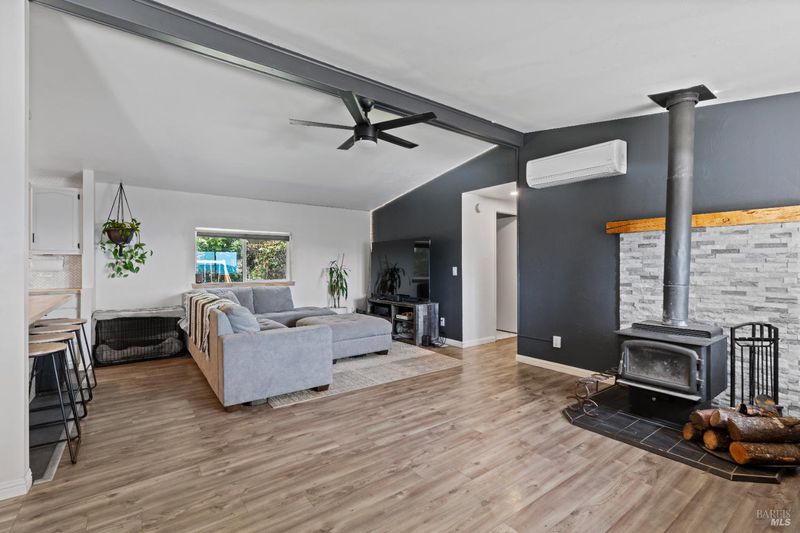 - Living Room, Raised Hearth, Stone, Wood Burning