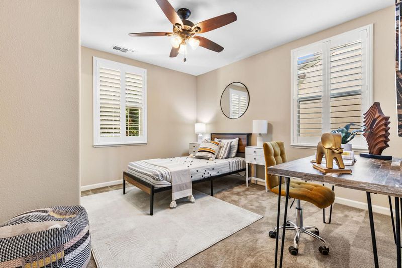 Welcome to this beautifully upgraded 4-bedroom, 2.5-bath home in the desirable Oak Park community. The open-concept main level features 9-foot ceilings and abundant natural light. The kitchen offers granite countertops, mosaic backsplash, modern appliances, and a spacious pantry, ideal for daily living and entertaining. Upstairs includes four spacious bedrooms with ceiling fans and a convenient laundry room. The primary suite features a custom walk-in closet and a luxurious ensuite bathroom with waterfall shower-head, marble vanity, dual sinks, ceiling speakers, and an additional storage closet. Plantation shutters add elegance throughout. The private backyard showcases installed pavers, a gazebo with adjustable sun shades, and an automatic drip/sprinkler system. Smart upgrades include Nest doorbell, Nest security cameras, Nest thermostats, and a newly installed AAA alarm system. Other upgrades include a water softener and a new water heater. Two-car garage, private driveway, multiple playgrounds nearby, and easy access to freeway, Gilroy Sports Park, Gilroy Gardens, shopping, trails, and Caltrain. This is a true turnkey opportunity perfect for a growing family or anyone seeking modern comfort in a prime location.