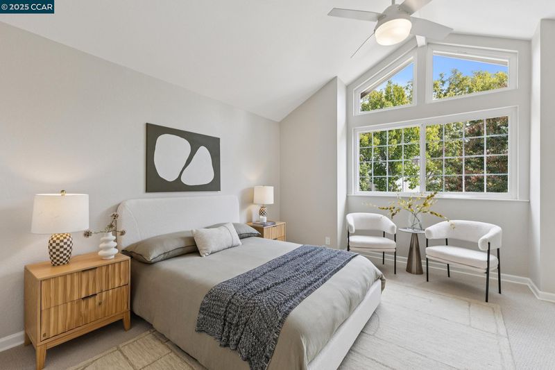 Step into your own private oasis in this beautifully updated townhome in the coveted Village neighborhood of Walnut Creek. A true serene escape, the show-stopping backyard is a rare find—featuring expansive low-maintenance turf, a generous deck, and endless space for entertaining, relaxing, or soaking in the California sunshine. It’s an outdoor retreat that will leave a lasting impression. Inside, soaring ceilings and abundant natural light create a bright and inviting atmosphere. The kitchen, the heart of the home, offers quartz countertops, a wine refrigerator, a gas range, and a cozy dining nook perfect for casual meals or morning coffee. Upstairs, both bedrooms feature ensuite bathrooms for privacy and convenience, while the primary suite shines with dual vanities, quartz counters, a soaking tub, and a separate shower—an ideal sanctuary to unwind at day’s end. The Village neighborhood adds to the appeal with a community swimming pool and tennis courts, plus direct gated access to Heather Farm Park. Top rated schools, the Ruth Bancroft Garden, shopping, restaurants, scenic hiking trails, downtown Walnut Creek and BART are all within close proximity. This home offers the perfect harmony of indoor comfort and an outdoor space that wows—truly the pinnacle of Walnut Creek living.