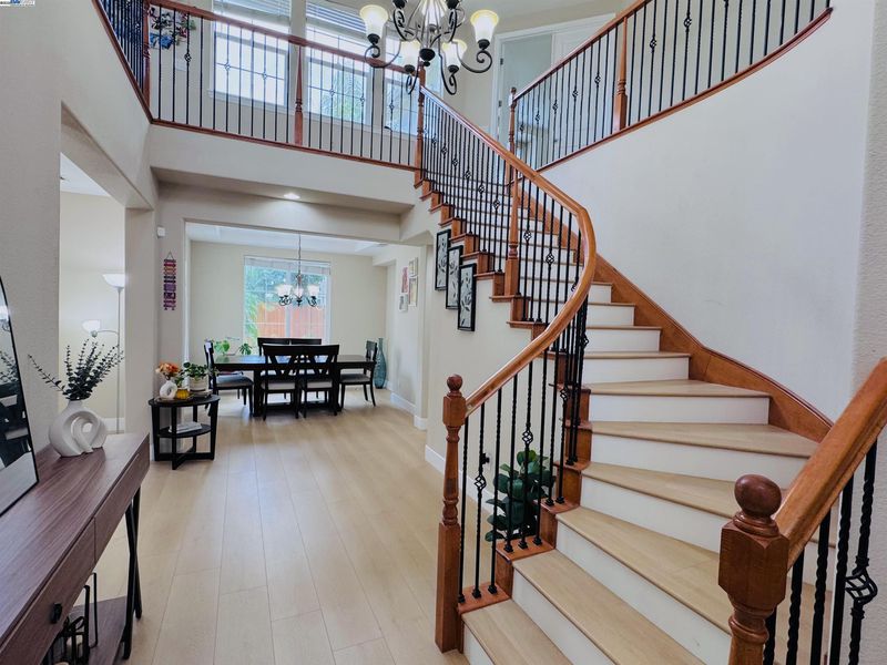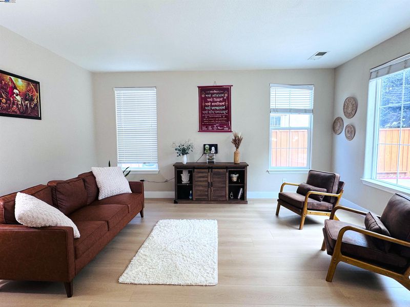 Welcome to this stunning 4 spacious bedroom, 3-full-bath home with 1 bed 1 full bath downstairs, that combines elegance and functionality in every corner. Step through the wide entrance into a space filled with natural light & excellent ventilation throughout the day. The home features new vinyl flooring, adding a modern touch & easy maintenance, while a grand curved staircase serves as an impressive focal point. It offers both a separate living room and family room, along with a formal dining area, providing ample space for relaxation and entertaining. The upgraded kitchen is a chef’s delight, complete with a gas stove, kitchen island, and walk-in pantry—perfect for cooking & storage needs. Downstairs includes a bedroom & full bathroom, ideal for guests or multi-generational living, while upstairs features 3 additional bedrooms, 2 full baths, and a spacious den area that can serve as a home office, playroom, or media space. Enjoy the outdoors in the large backyard with concrete flooring, perfect for gatherings or relaxation under the sun, and make use of the 3-car garage offering abundant parking and storage. With its bright, airy feel and thoughtful layout, this home is designed for both comfort and style—a perfect fit for modern family living! IT TICKS-OFF ALL THE CHECKBOXES!!