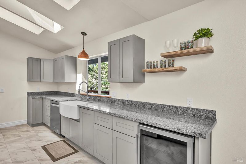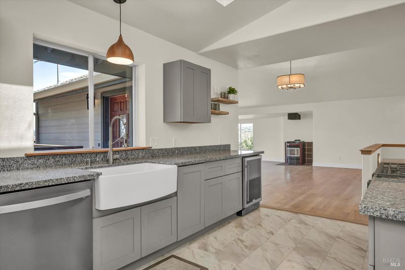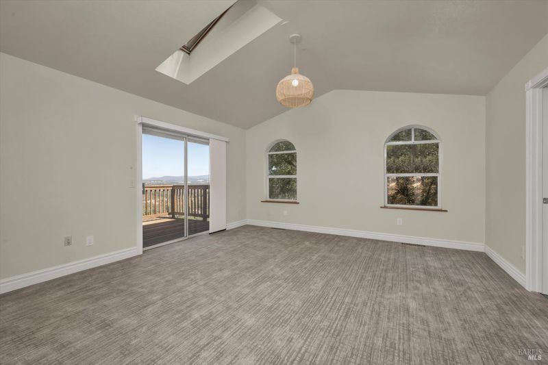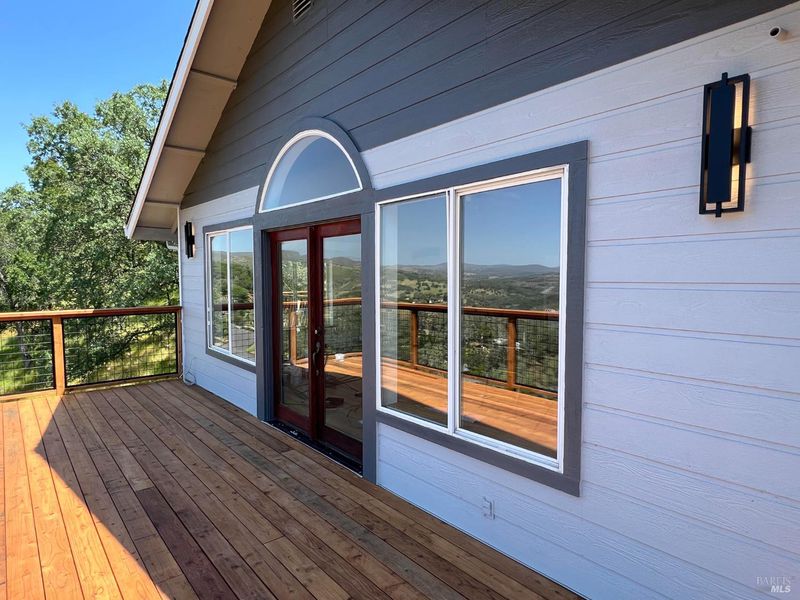 Beautifully Updated Home with Stunning Views and Modern Amenities ~ Welcome home, to your 3-bedroom, 2-bathroom oasis with a brand-new roof, redwood deck, fresh paint inside & out, and upgraded interior. The living area is all on one level, making it very convenient. The refreshed kitchen features Whirlpool appliances, shaker cabinets, granite countertops and Carrera marble-style vinyl flooring. Bedrooms have plush new Shaw carpeting and there are stylish lighting fixtures (Quoizel and Kichler) throughout. Skylights in the primary bedroom and kitchen enhance the natural light and inviting feel. Enjoy light oak hardwood flooring in the living room and updated tile in the bathrooms. Indoor laundry room has extra storage. The property also includes an oversized garage with room for storage and a work area. Prepare to be captivated by the vast and amazing mountain and valley panoramas, showcasing Putah Creek and the dramatic palisades, in addition to vistas of Guenoc/Langtry vineyards in the distance. Join the voluntary POA for $150 per year, visit Putah Creek and the marina. Located near Napa Valley's restaurants and wineries, this home is under 2 hours' drive to San Francisco. Don't miss out on this incredible opportunity! Schedule a viewing and make this beautiful home yours.