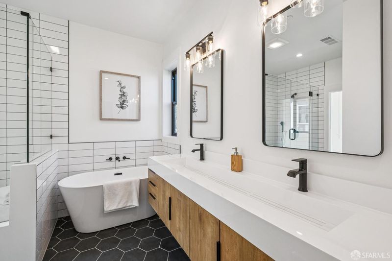 Welcome to 2411 Sixth Street, a newly built modern home in the heart of West Berkeley with a detached one-bedroom ADU. Thoughtfully designed, it blends farmhouse warmth with California coastal style in a highly sought-after location. The main residence offers over 2,000 square feet with three bedrooms and three spa-inspired bathrooms. An open-concept kitchen, dining, and living area is filled with natural light from expansive windows and features Thermador appliances, two-tone cabinetry, and seamless indoor-outdoor flow to a private patio. Upstairs, the primary suite includes vaulted ceilings, generous closet space, and an elegant ensuite with dual vanities and a walk-in shower. A dedicated home office and high-efficiency heating and air conditioning provide year-round comfort throughout this all-new construction. The landscaped outdoor spaces are ideal for relaxing or entertaining, while the one-bedroom, one-bath ADU at the rear offers flexibility for guests, extended family, or rental income. This all-electric property includes solar panels on both structures, separate meters, and EV-charger readiness. Ideally located near 4th Street shops, Berkeley Bowl, and North Berkeley BART, the home boasts a Walk Score of 89 and Bike Score of 99, offering exceptional urban convenience. 2411 Sixth Street is a rare opportunity to own a stylish, energy-efficient home in West Berkeley.