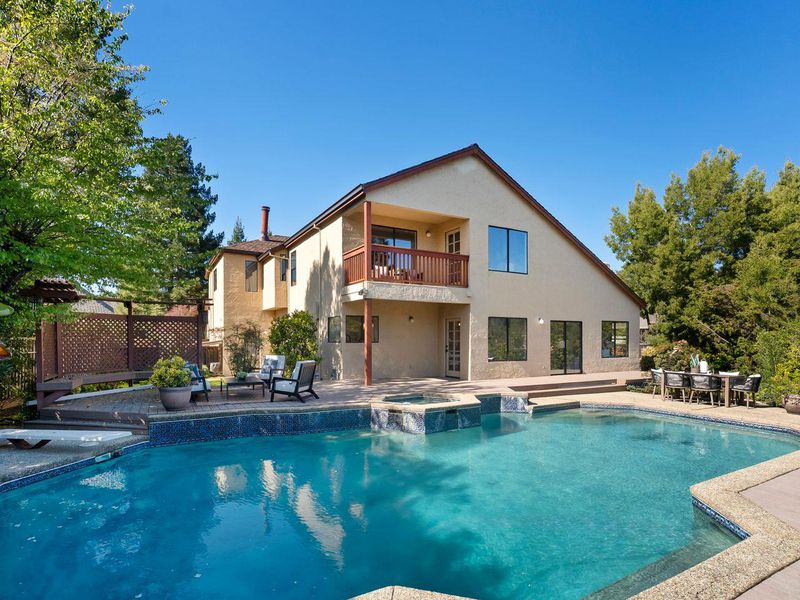 Welcome to 6 Woodridge Court, an elegant residence nestled within the prestigious Woodhill Estates community, where privacy and elevated lifestyle come together. This beautiful 4-bedroom, 3-bathroom home with a 3 car garage offers a thoughtfully designed floor plan ideal for both comfortable living and stylish entertaining. Step through the grand entry foyer, where soaring ceilings and natural light create an immediate sense of openness in the living room and dining room with wood burning fireplace, glass door to backyard, bay of windows, and a wet-bar for Happy Hour. Your kitchen has granite countertops, SS appliances, large center island, adjacent breakfast room and step down family room with fireplace. Also on the ground floor, you will find the 4th bedroom with connecting bath, a laundry room and access to your 3 car-garage. Upstairs, there is the primary suite with lounge area or office, fireplace, raised ceilings, huge soaking tub, double basin sinks and two walk-in closets, plus the secondary bedrooms and a hall bath with double basin sinks and a separate water closet making the hall bath more functional to share. Beyond the home, there is a magical backyard with a pool, deck, patio, large lower yard and VIEWS - very peaceful setting. You will LOVE living here!