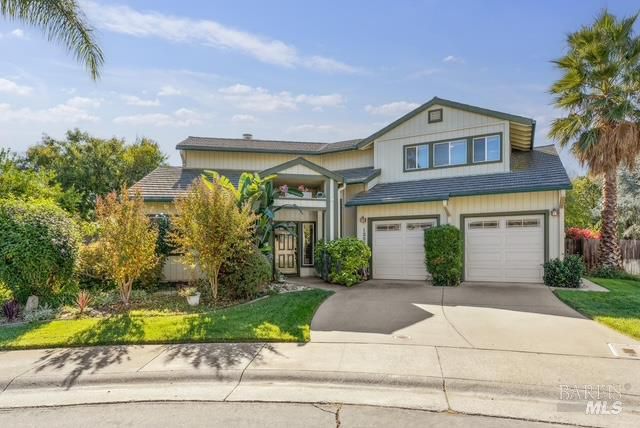 Welcome to 1365 Jacobs Place, a spacious and thoughtfully designed 4-bedroom, 2.5-bath home situated in a peaceful cul-de-sac in one of Dixon's most desirable neighborhoods. This 2,206 sq ft residence sits on a generous 7,000 sq ft lot and offers a flexible layout ideal for multigenerational living or those seeking privacy and space. The primary bedroom and an additional bedroom are conveniently located on the ground floor, along with a half bath. Upstairs, you'll find two more bedrooms and a full bathroom, providing a separate retreat for family or guests. Enjoy new flooring throughout and an inviting living and dining area with soaring ceilings that create a bright and open atmosphere. The kitchen offers ample cabinet space and a large island perfect for everyday use or hosting. Step outside to find a sunroom gazebo and a covered awning great for outdoor entertaining. The home also includes a new water heater, an owned water softener system, and a spacious 3-car garage. Located close to schools, shopping, and with easy access to Davis, Vacaville, and Sacramento, this home blends comfort, convenience, and value. Don't miss this opportunity to make it yours!