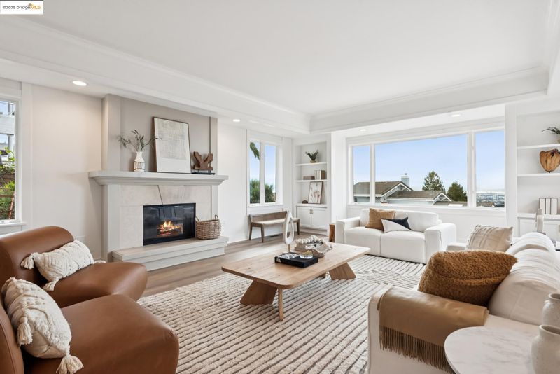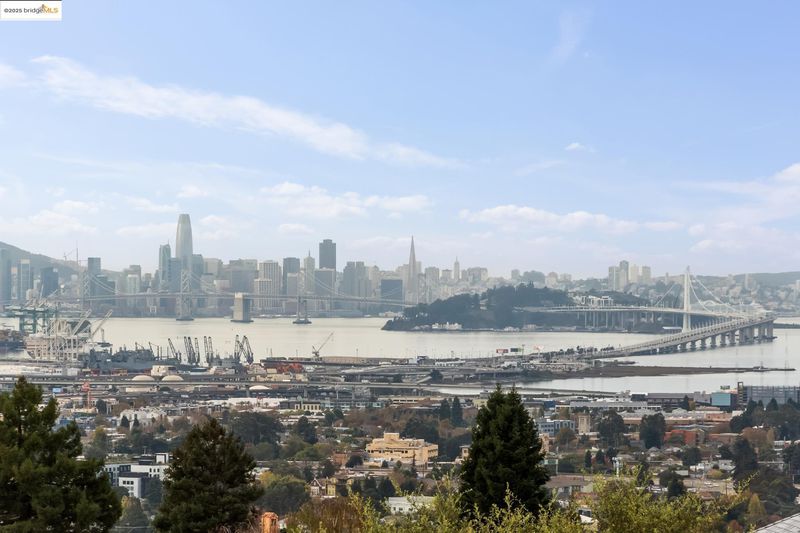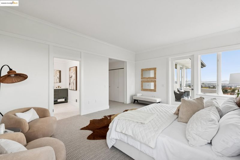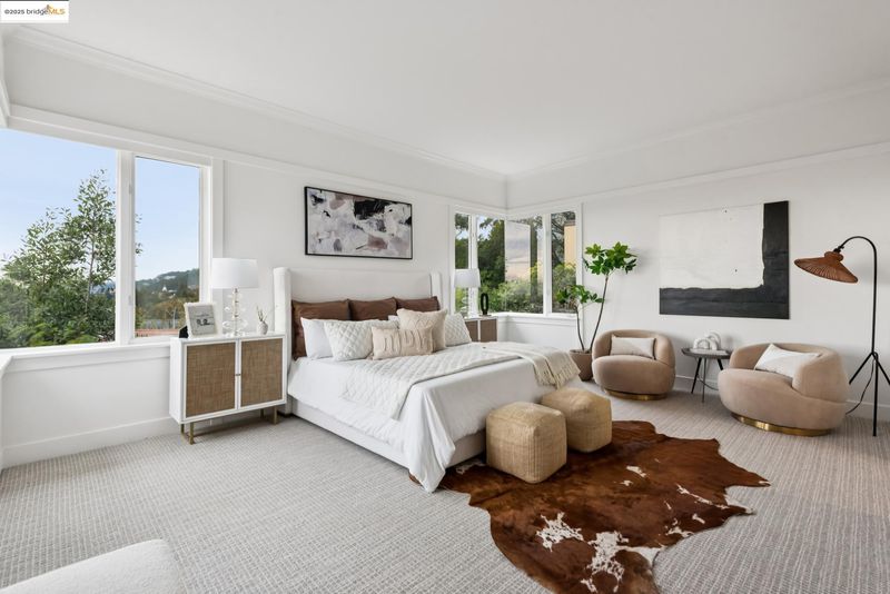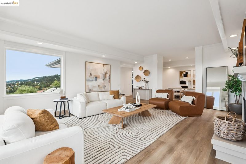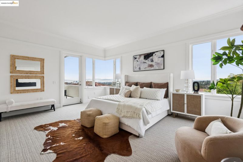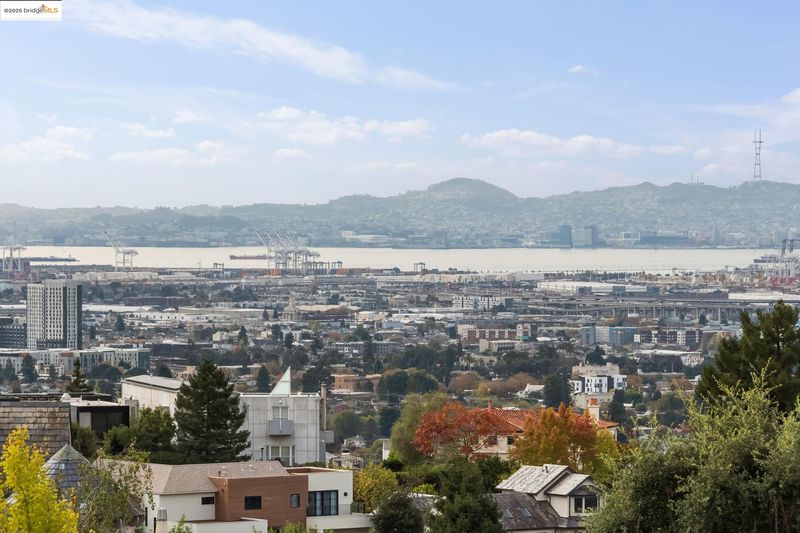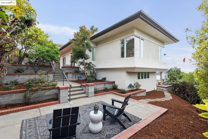 Perched in coveted Upper Rockridge, this contemporary home offers stunning panoramic views of the Bay and Berkeley Hills. The main level welcomes you with a gracious foyer and convenient elevator, opening to a spacious living room framed by expansive windows and breathtaking views. The large dining room and open, updated kitchen create a natural flow for entertaining. The primary suite features a brand-new spa-like bath, with two additional bedrooms and baths, laundry, and a powder room completing this level. A serene patio offers a private outdoor escape or ideal home office access. Downstairs, a separate suite with a generous family room, bedroom and bath provide flexible living space—perfect for guests, an au pair, or an in-law suite—with its own exterior entrance. A large garage with ample storage adds convenience and versatility. Ideally located near Rockridge shopping, dining, BART and top commuter options, this home combines style, comfort, and location in one exceptional package.