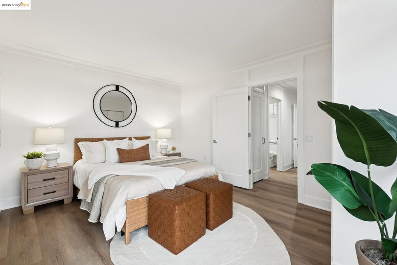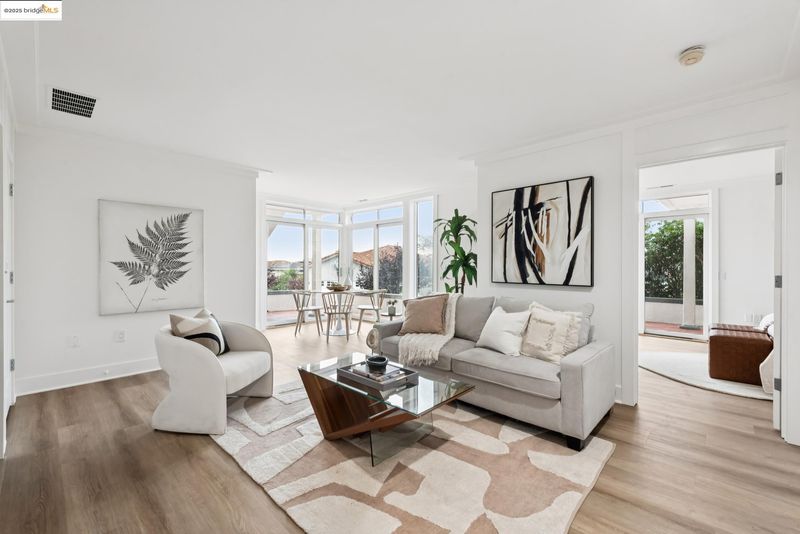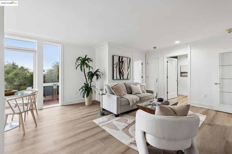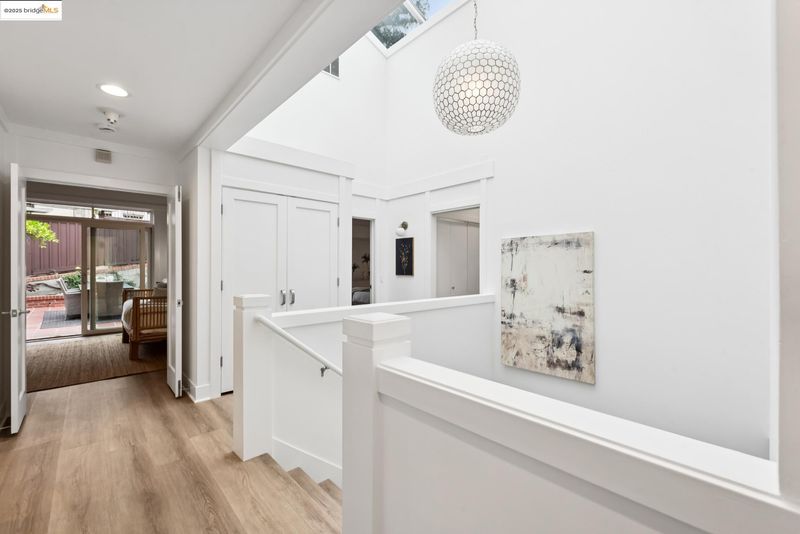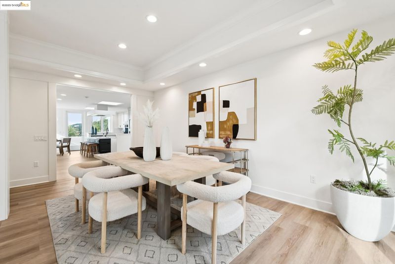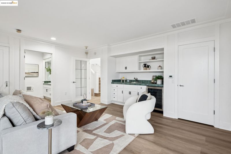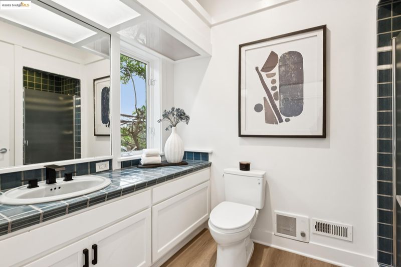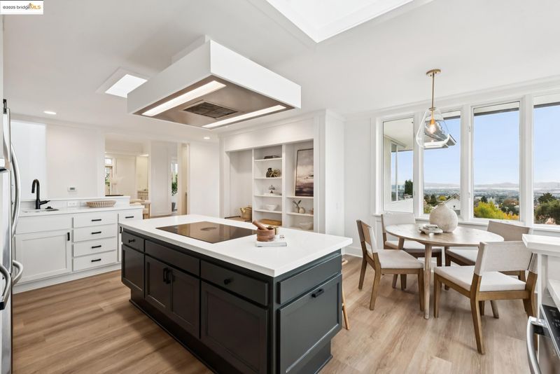 Perched in coveted Upper Rockridge, this contemporary home offers stunning panoramic views of the Bay and Berkeley Hills. The main level welcomes you with a gracious foyer and convenient elevator, opening to a spacious living room framed by expansive windows and breathtaking views. The large dining room and open, updated kitchen create a natural flow for entertaining. The primary suite features a brand-new spa-like bath, with two additional bedrooms and baths, laundry, and a powder room completing this level. A serene patio offers a private outdoor escape or ideal home office access. Downstairs, a separate suite with a generous family room, bedroom and bath provide flexible living space—perfect for guests, an au pair, or an in-law suite—with its own exterior entrance. A large garage with ample storage adds convenience and versatility. Ideally located near Rockridge shopping, dining, BART and top commuter options, this home combines style, comfort, and location in one exceptional package.